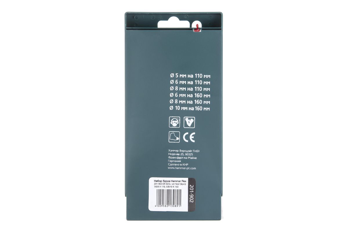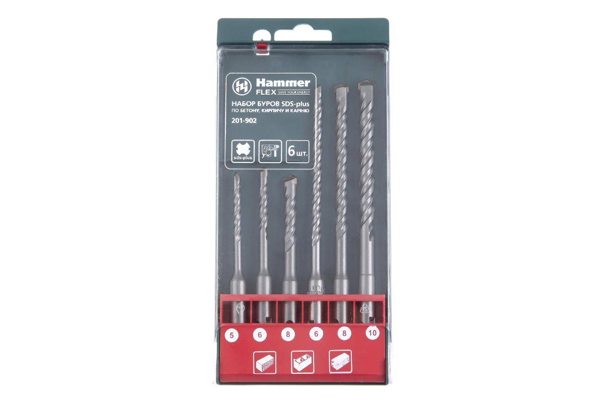 Набор буров Hammer Flex 201-902 DR SDS+ набор No2 5/6/8 X 110, 6/8/10 X 160, 6шт.