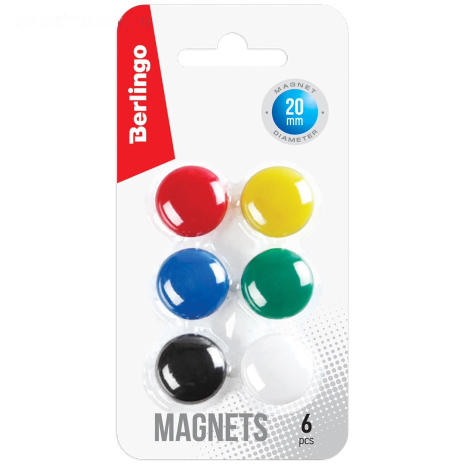 Магниты для досок Berlingo, 20 мм, 6 штук, 5 цветов, МИКС