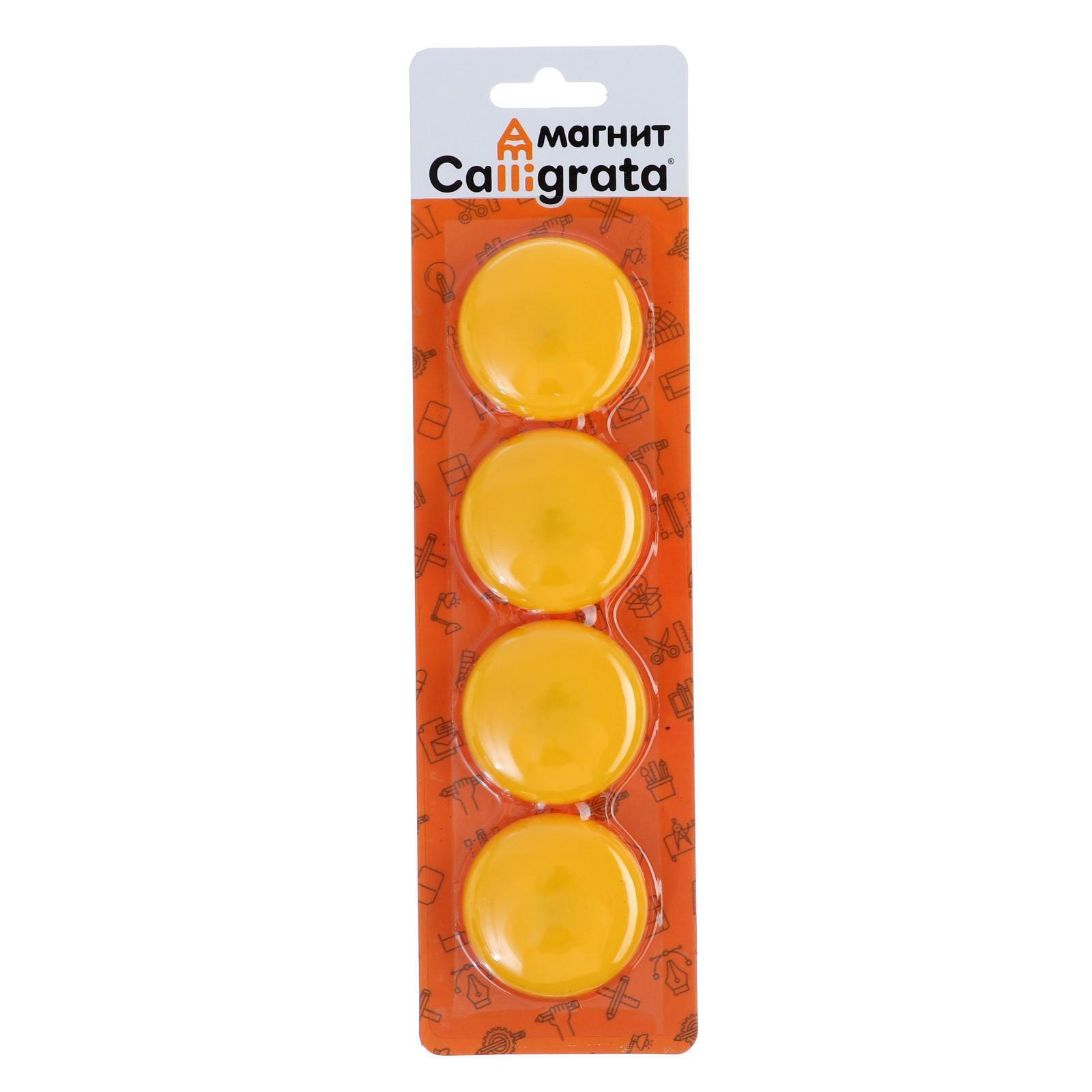 Магниты для доски, d-4 см, набор 4 штуки, блистер, жёлтые