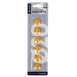Магниты для досок "Смайлики" 20 мм, 6 штук, GLOBUS желтые