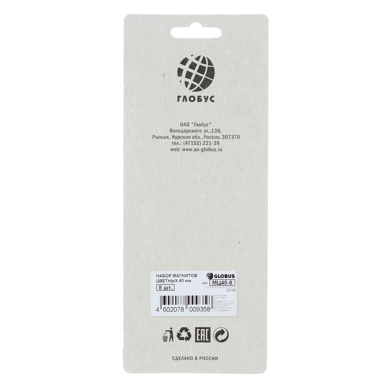 Магниты для досок 40 мм, 8 штук, GLOBUS цветные, в картонном блистере
