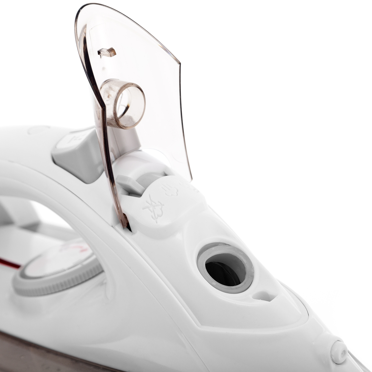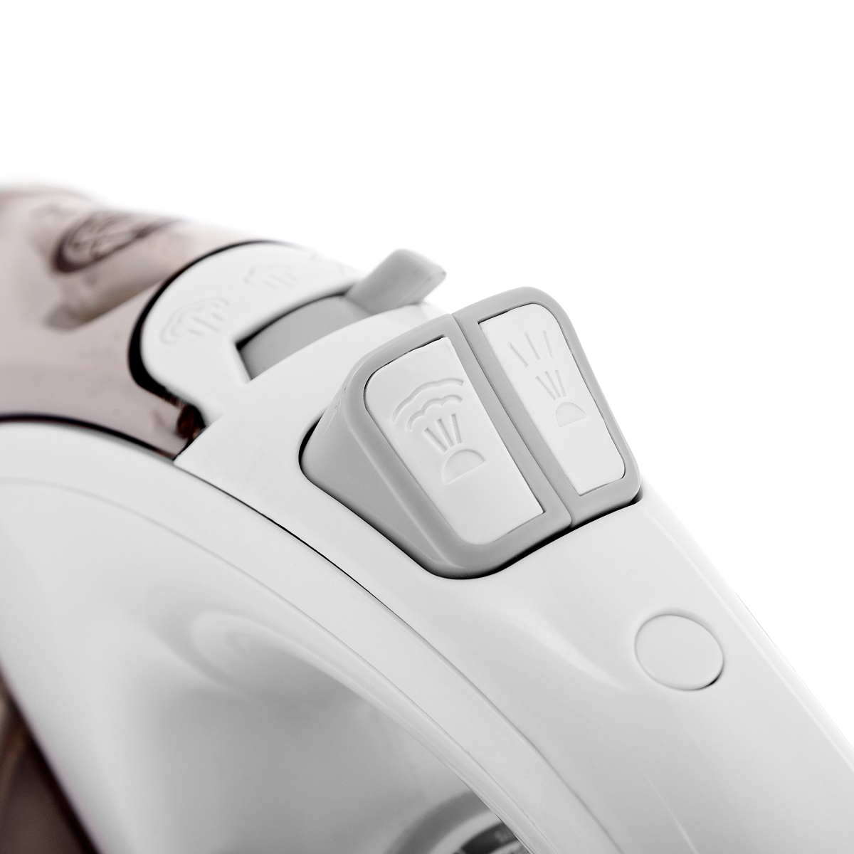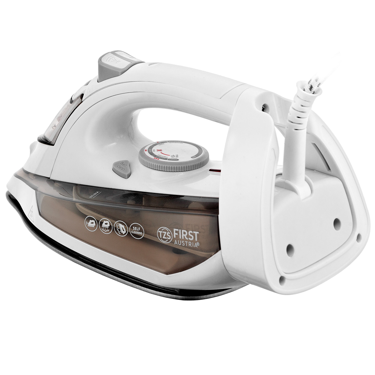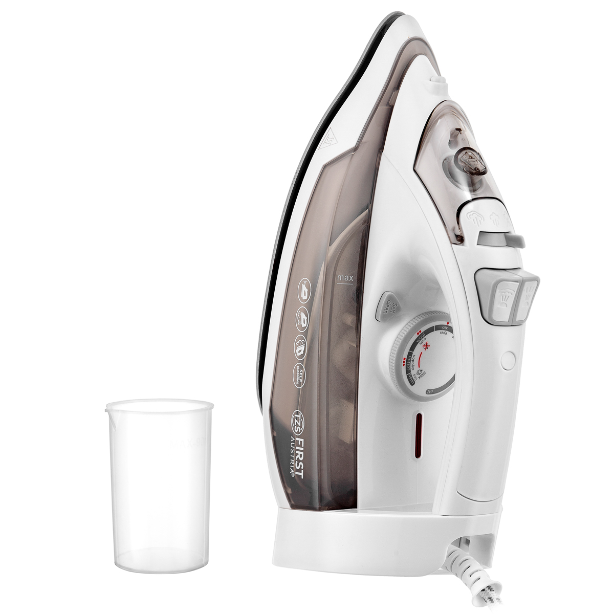 Утюг First FA-5618-7-GR дополнен функцией сухого глажения, которая незаменима для придания эстетичного вида тонкой подкладочной ткани, поверхность которой нередко покрывается разводами. Благодаря функции вертикального отпаривания не составит труда устранить самые непокорные складки на гардинах и шторах, не снимая их с карниза. Предусмотренная в FA-5618-7-GR противокапельная система исключит риск вытекания жидкости из соответствующего резервуара. Расположенные на подошве прибора 49 отверстий способствуют подаче мощного потока пара, который справится с разглаживанием любых заломов. Чтобы предупредить забивание соответствующих желобков отложениями, в домашнем помощнике реализована система самоочистки. Выполненная с использованием керамики подошва не только порадует легким скольжением по всем типам тканей, но также не спровоцирует появление блестящих следов на одежде.