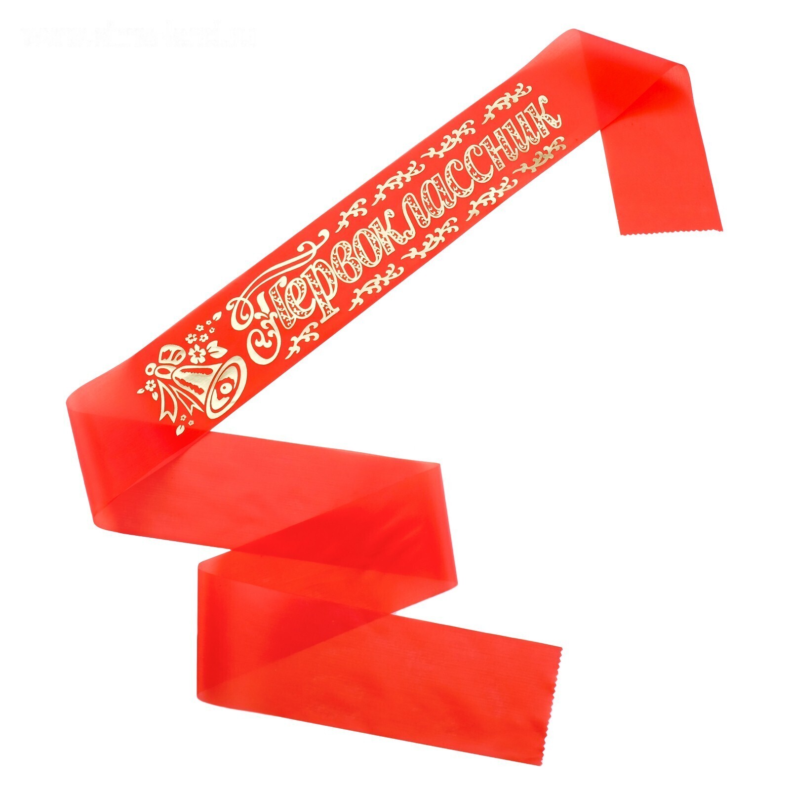 Лента "Первоклассник", шёлк, красный, 10х160 см
