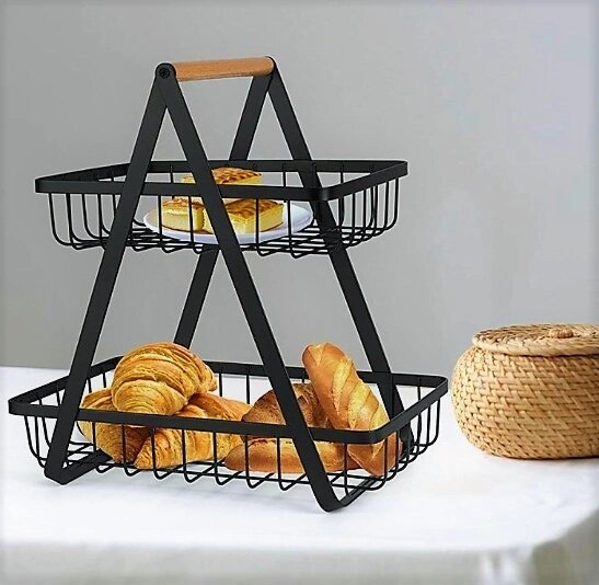 Корзина для хранения фруктов, овощей, посуды Home storage rack / фруктовница / хлебница / органайзер двухъярусный