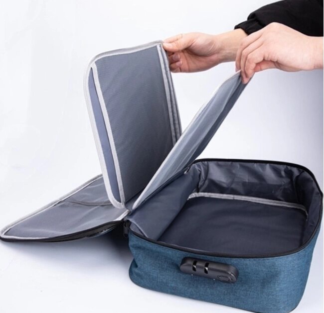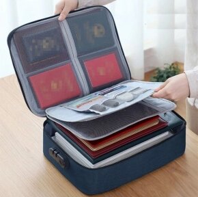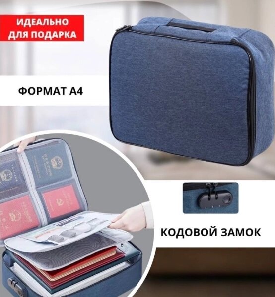Органайзер для хранения документов с кодовым замком / дорожная сумка - органайзер / темно-синий