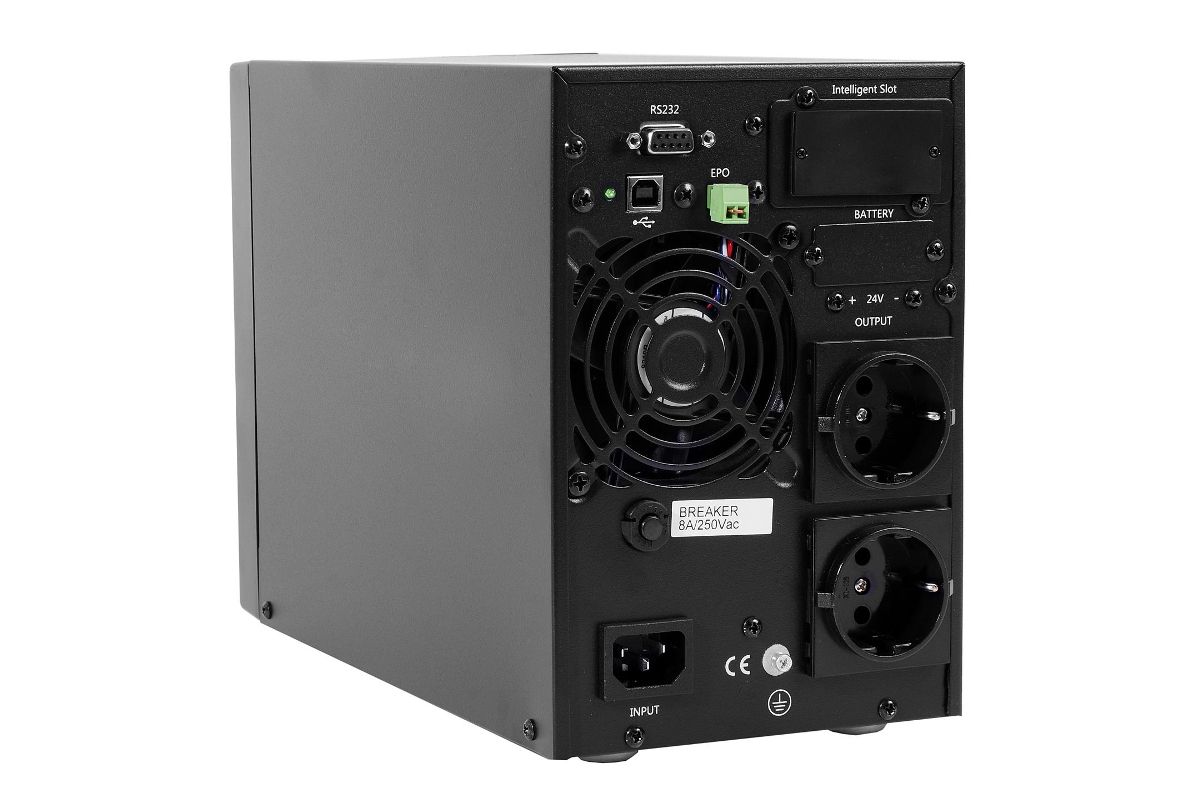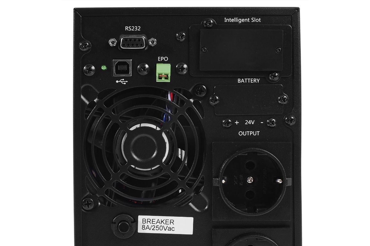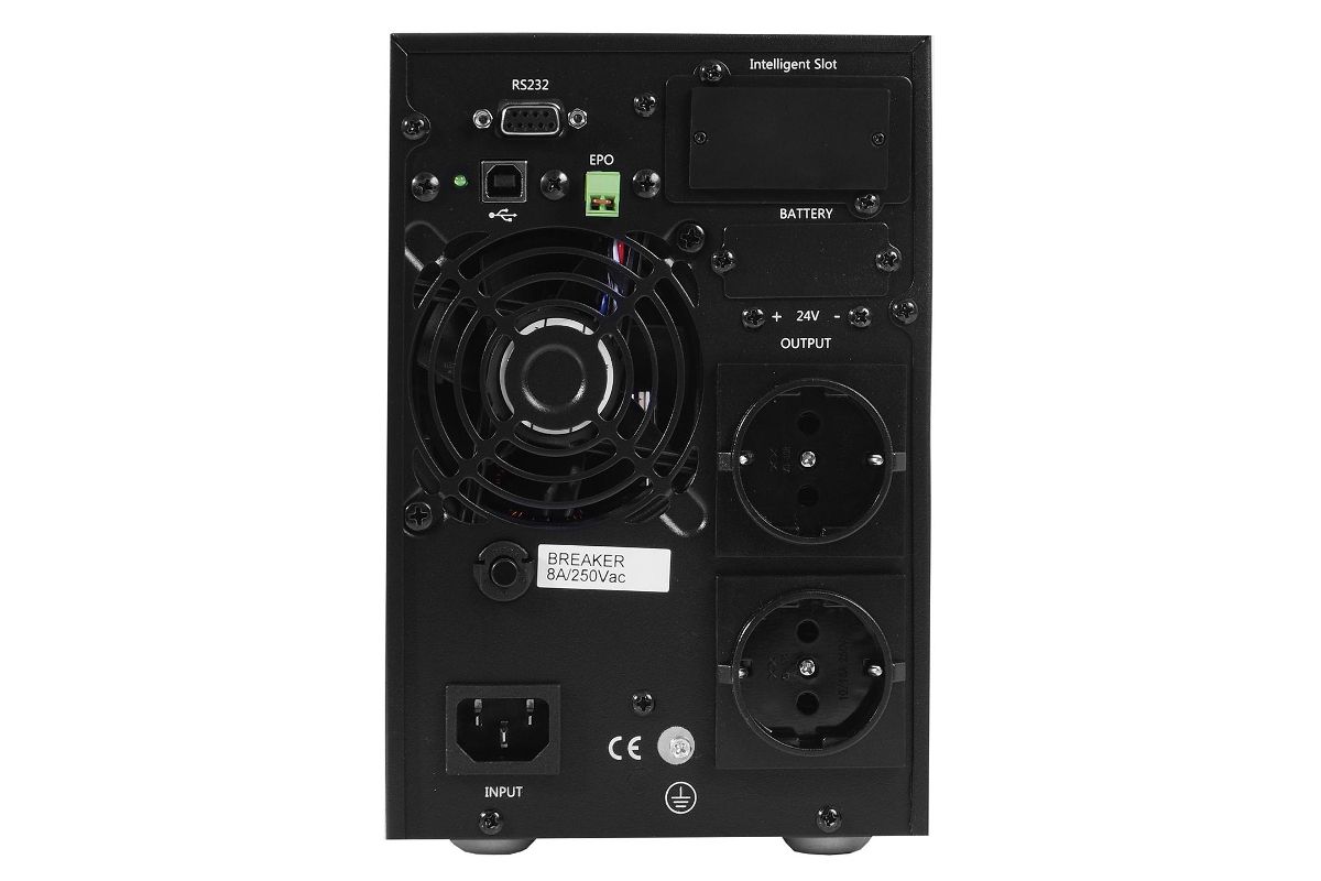 Построен по схеме двойного преобразования энергии, которая не требует переключения питания сеть/батарея. Форма выходного напряжения - ВСЕГДА синусоидальная.