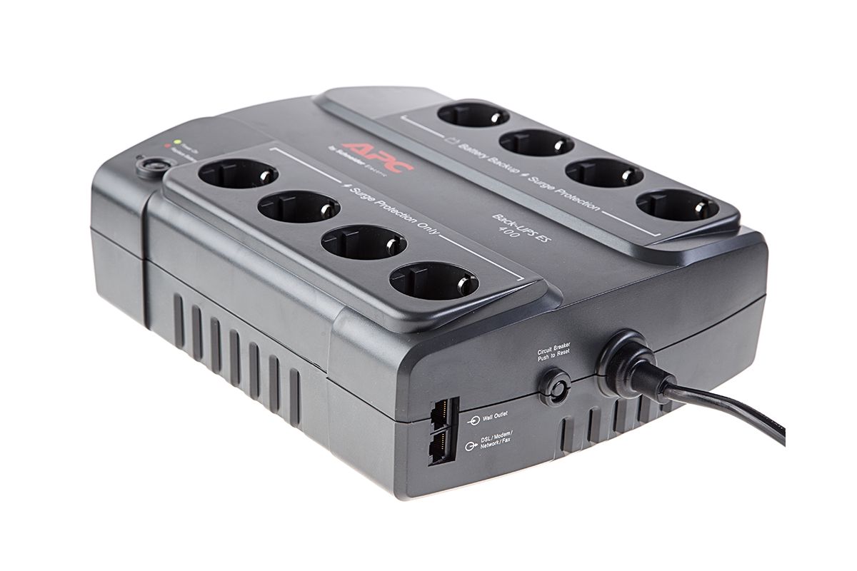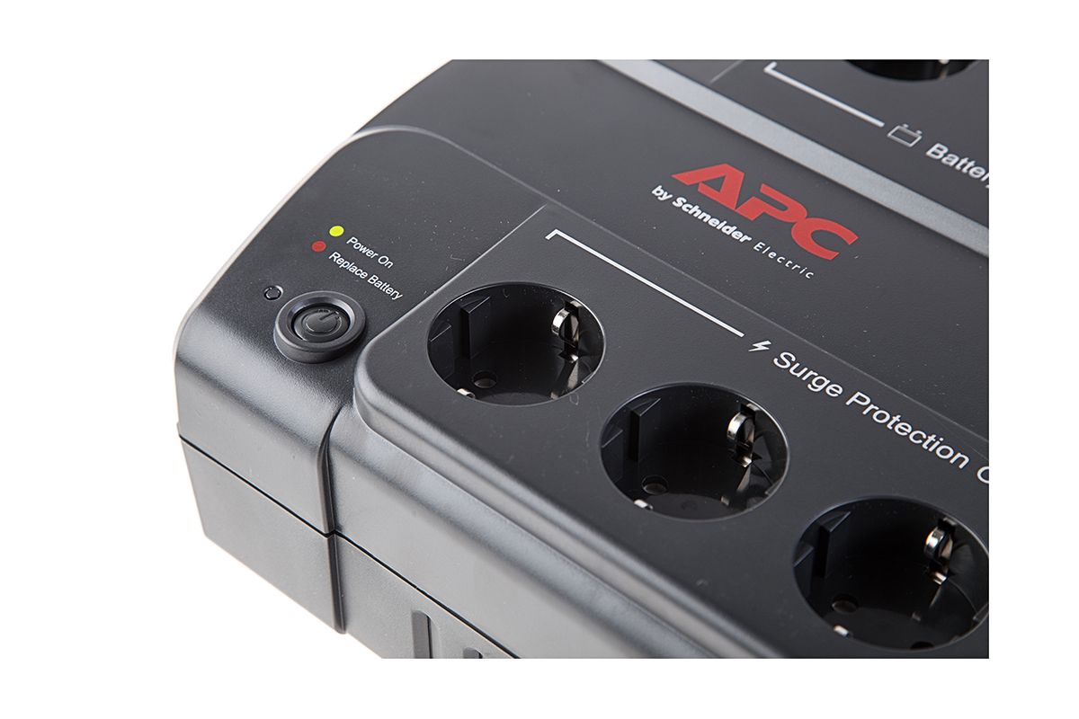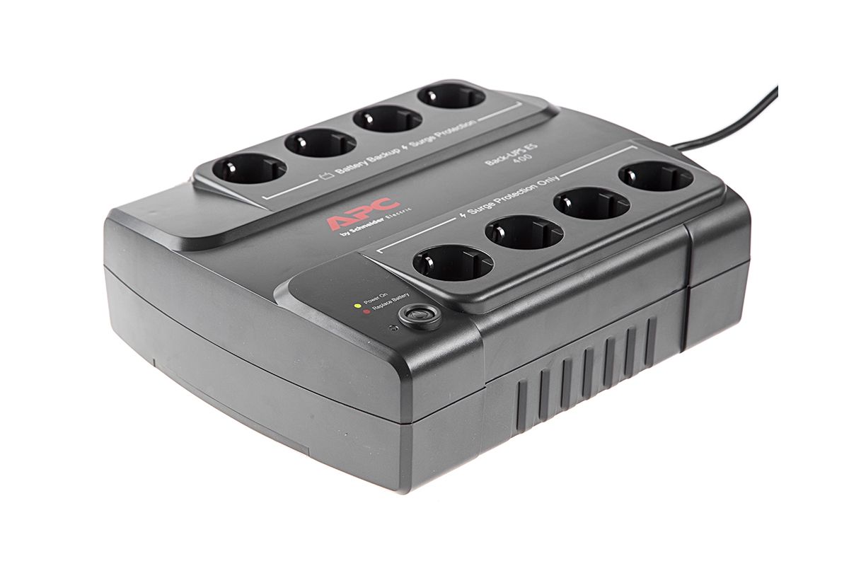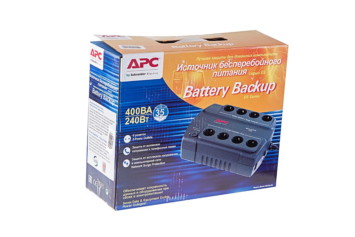 Компактный источник бесперебойного питания ИБП APC BE400-RS предохраняет технику от перебоев в сети. При выходной мощности в 240 Вт, к ИБП можно подключить до 8 различных устройств. Устройство оснащено аккумуляторной батареей, которая будет работать до 18 минут.