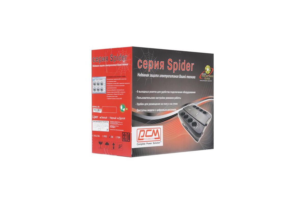 Источник бесперебойного питания Powercom Back-UPS SPIDER, OffLine, 450VA / 270W, Tower, Schuko