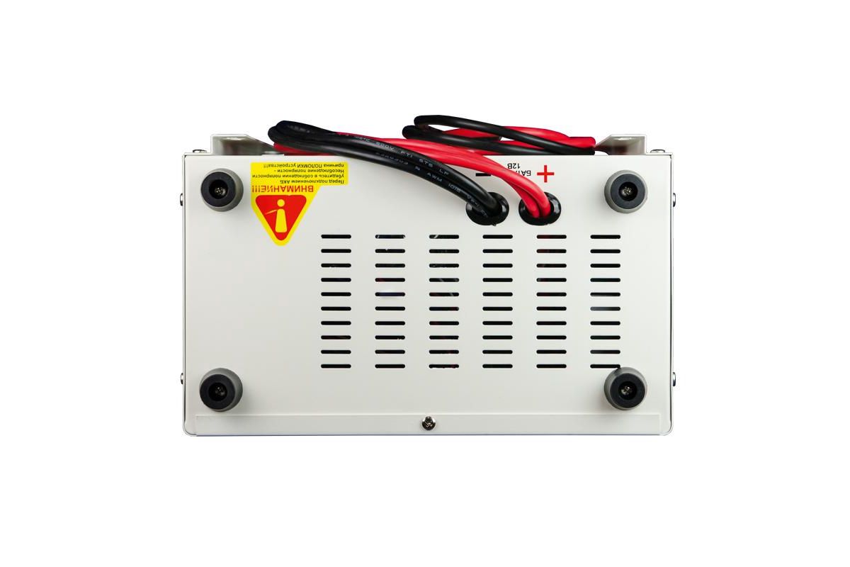 В отсутствие электрического тока в сети работает в инверторном режиме и преобразует постоянный ток напряжением 12 Вольт от подключённой внешней АКБ в переменный ток 220 Вольт ±1% для потребителей.