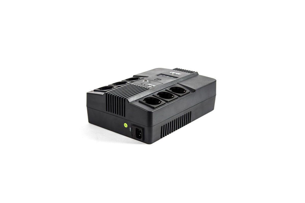 Источник оснащён 6 розетками (с поддержкой и без поддержки резервной работы), выходом USB для зарядки мобильных устройств и портами RJ-45 для защиты локальной сети — всё что нужно для безопасной работы компьютерной техники.