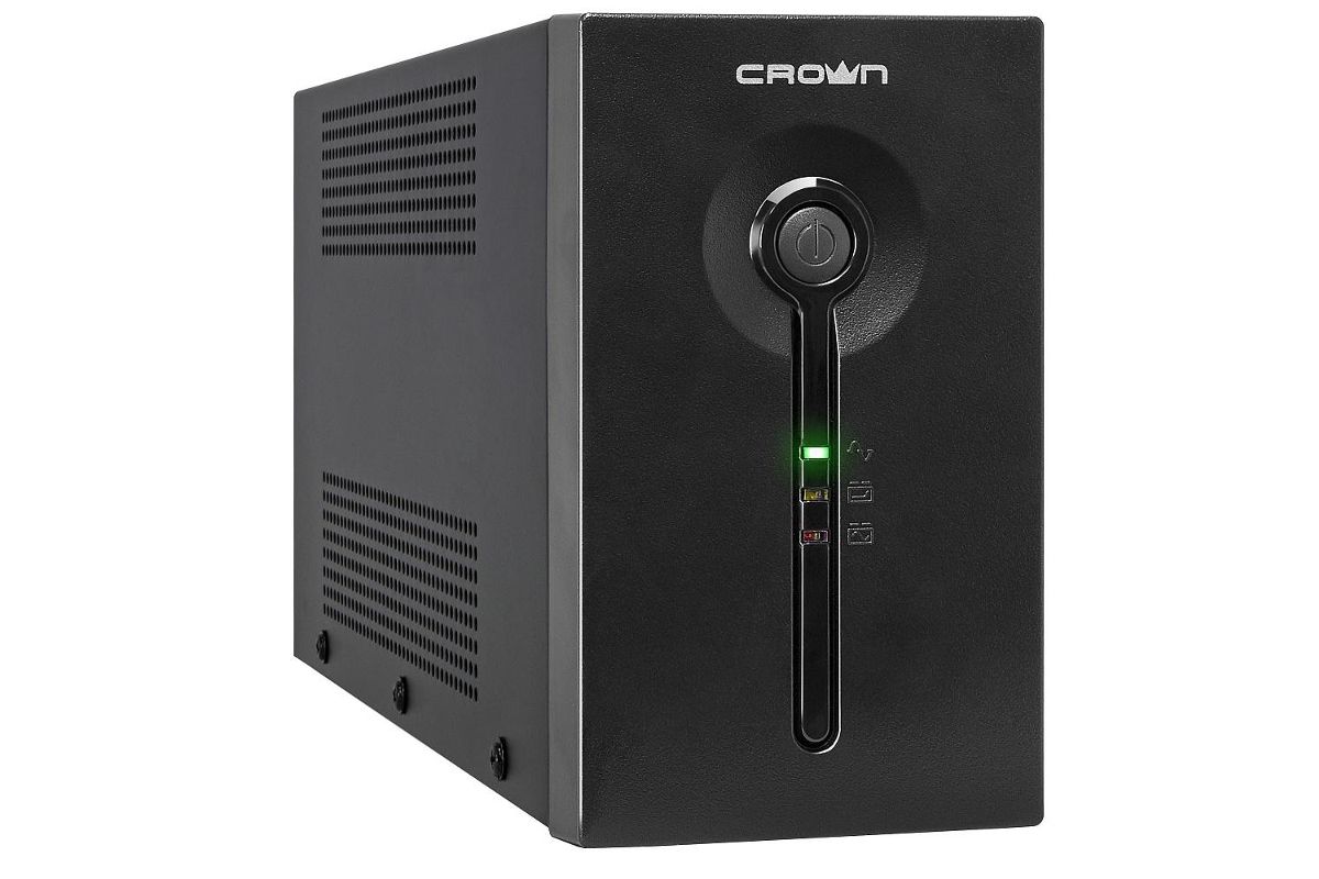 ИБП CROWN CMU-SP650IEC снабжен четырьмя компьютерными розетками IEC7 на выходе. О переходе на автономное питание и уровне заряда батарей пользователь получает информацию при помощи звуковых и световых сигналов. ИБП способен поддерживать работу подключенной к нему техники до 6 минут в автономном режиме. За это время вполне возможно сохранить открытые документы и завершить отправку электронного сообщения.