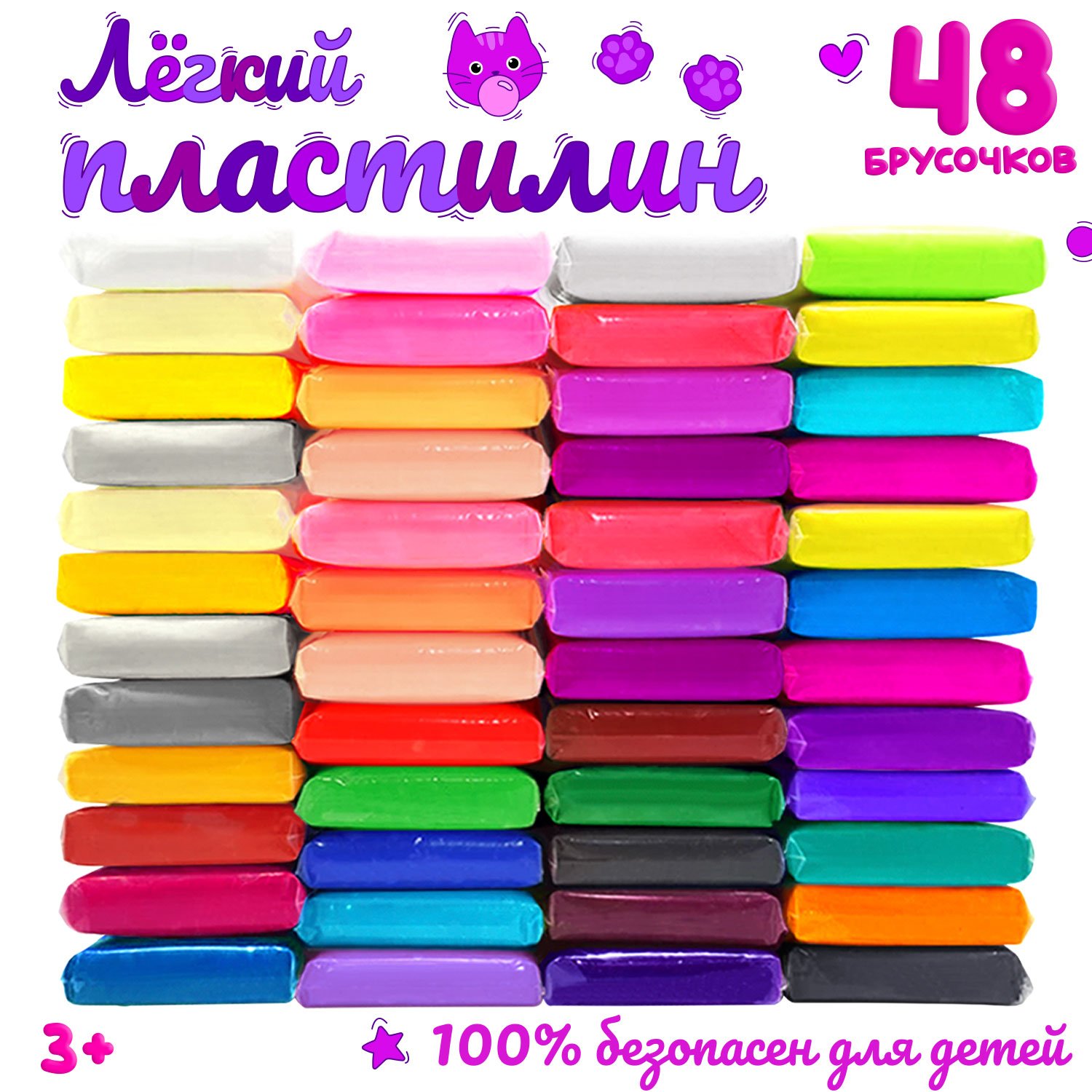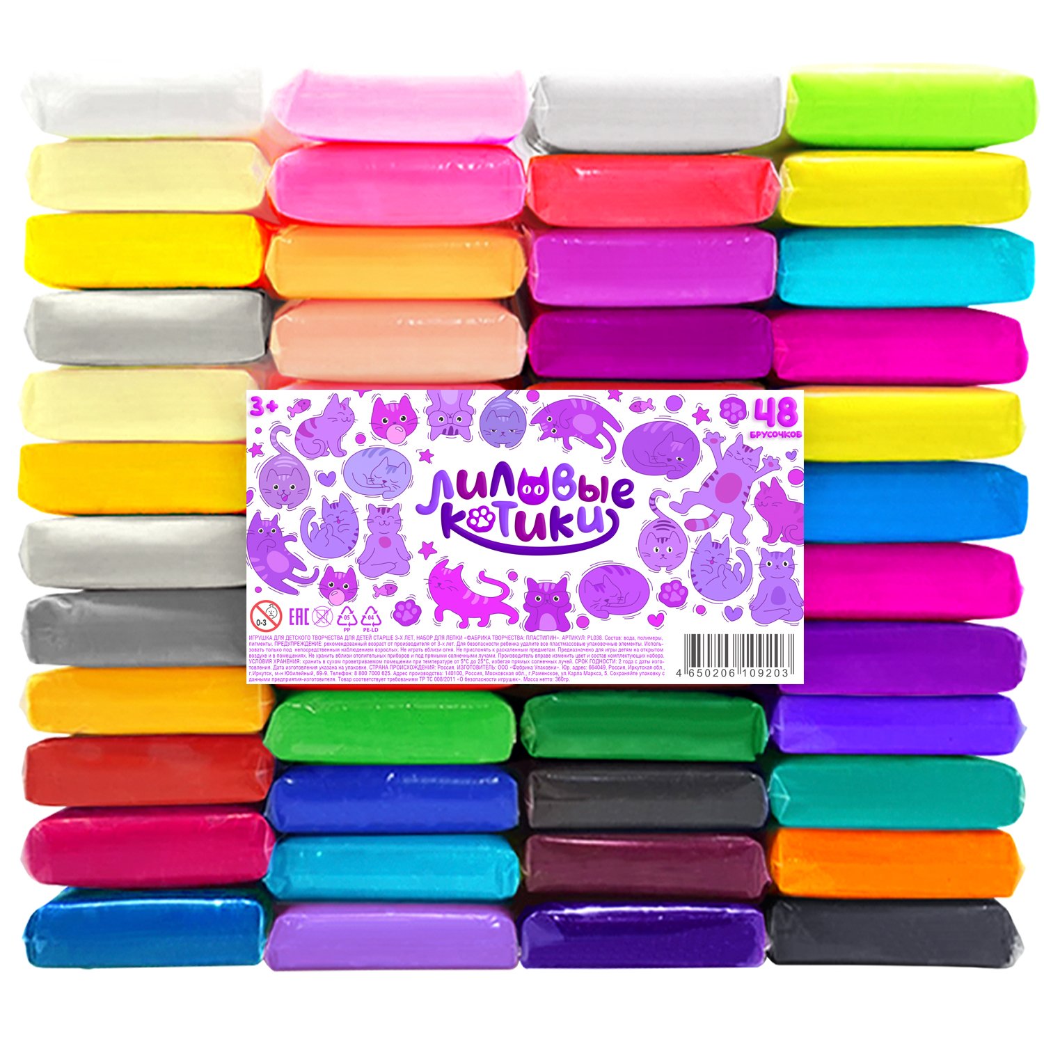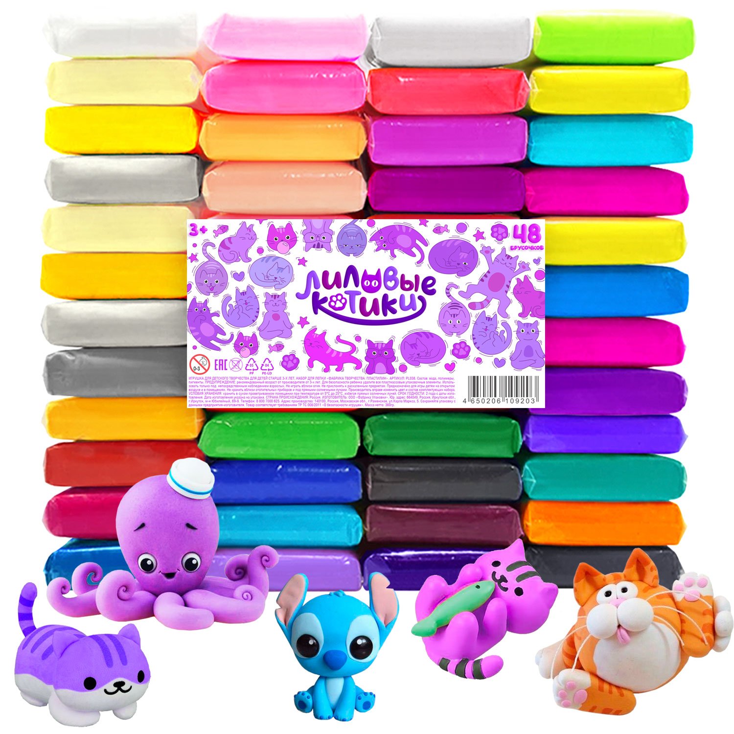 Набор для лепки Лиловые котики воздушный пластилин в пакете 48 шт со стеками CL017