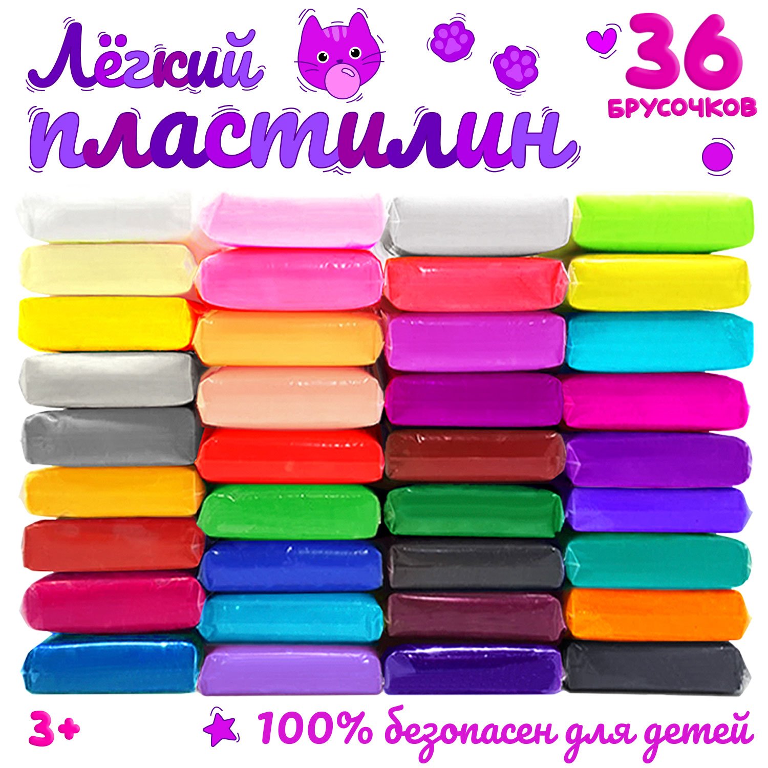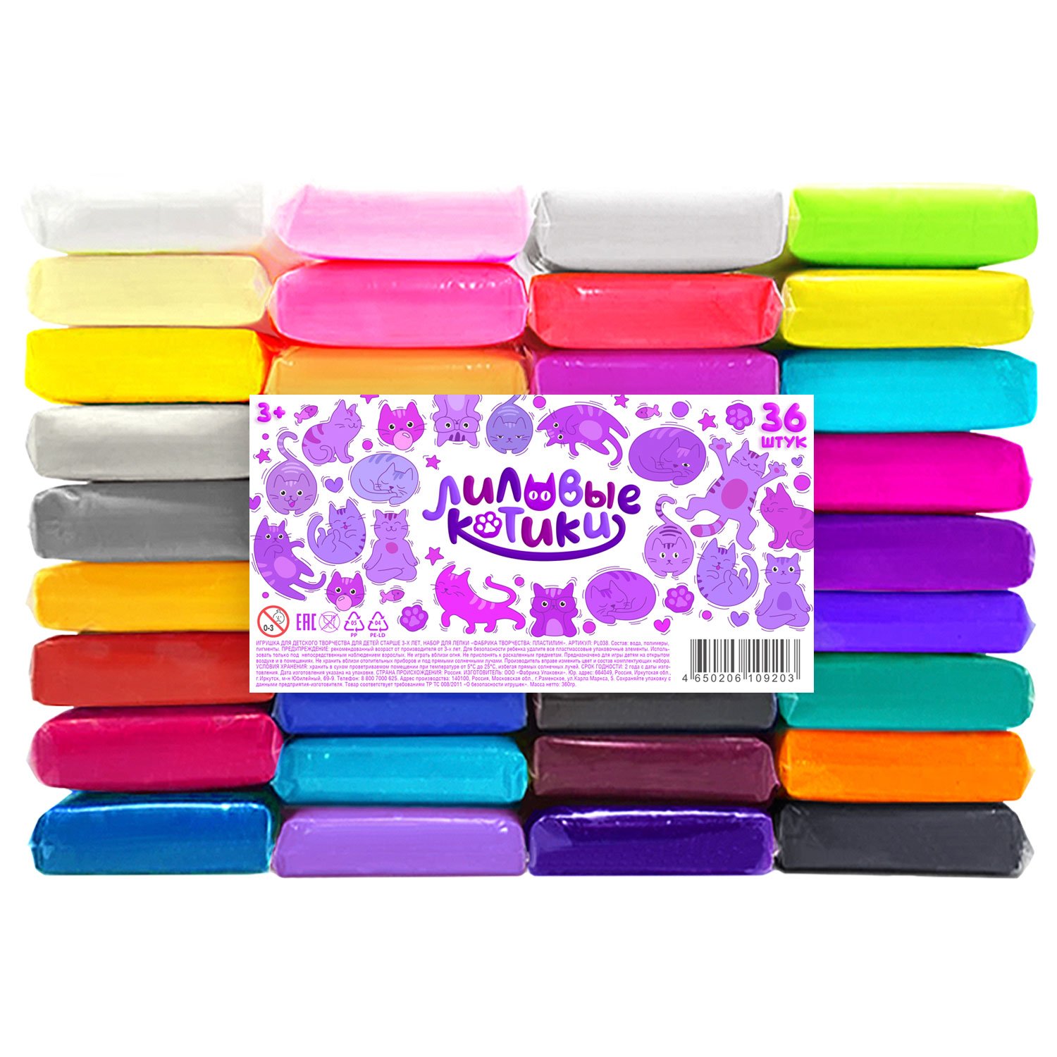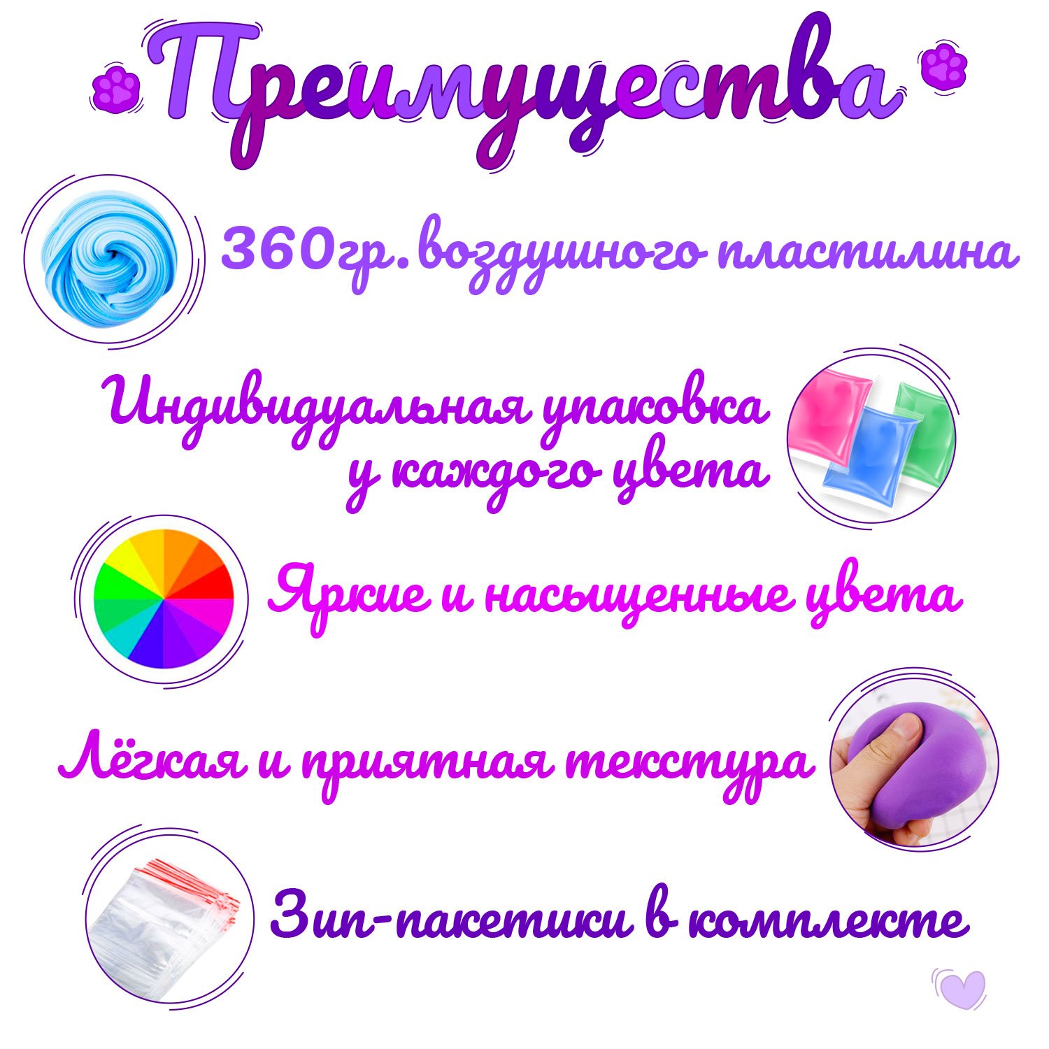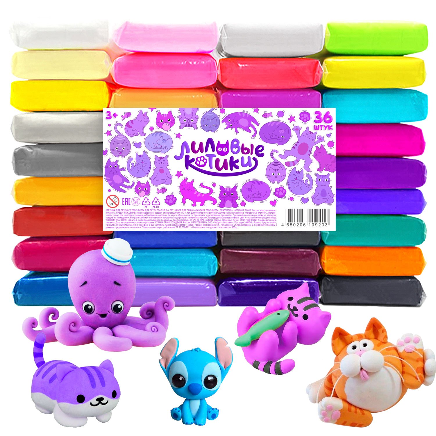 Воздушный пластилин Лиловые котики в пакете 36 шт со стеками CL016
