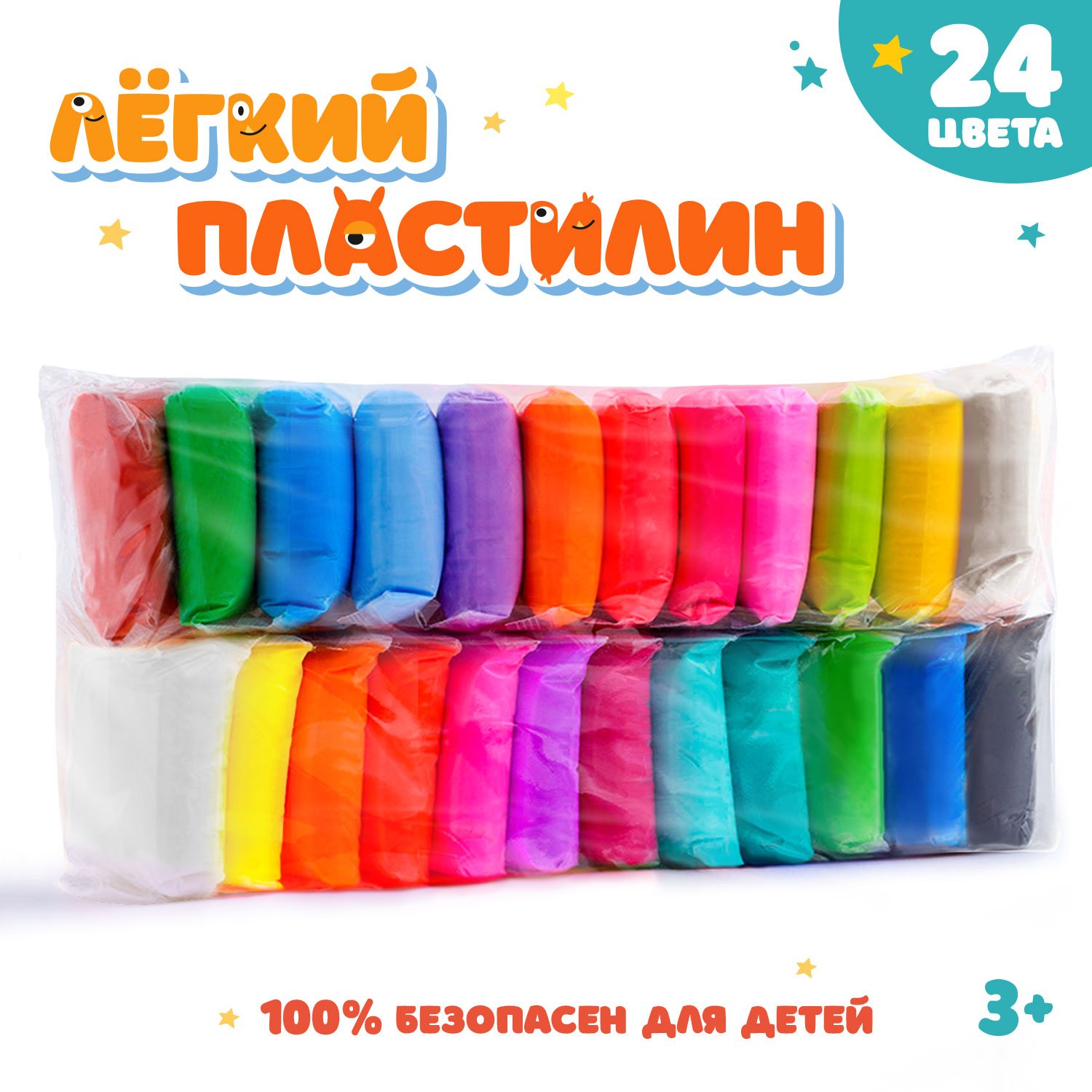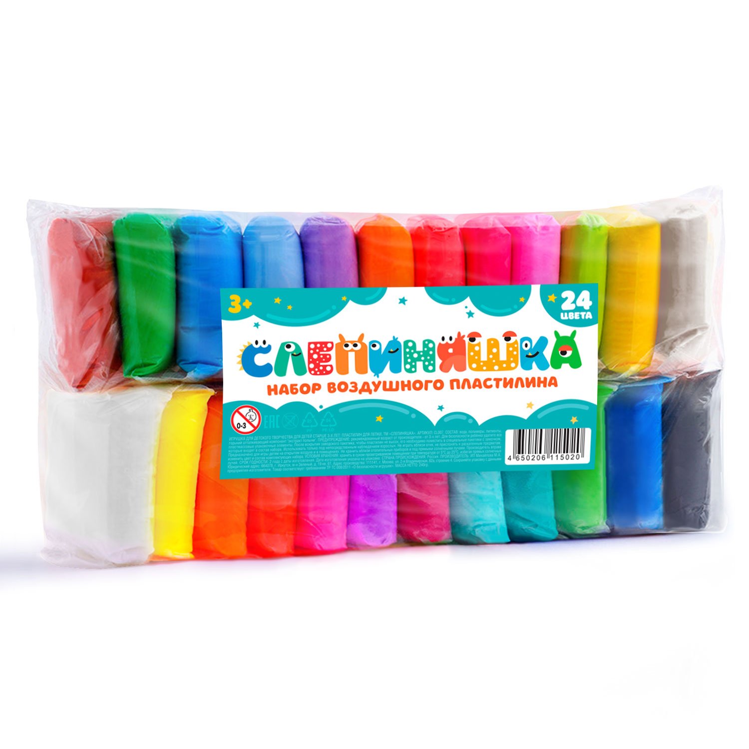 Воздушный пластилин Слепиняшка в пакете 24 шт со стеками CL007