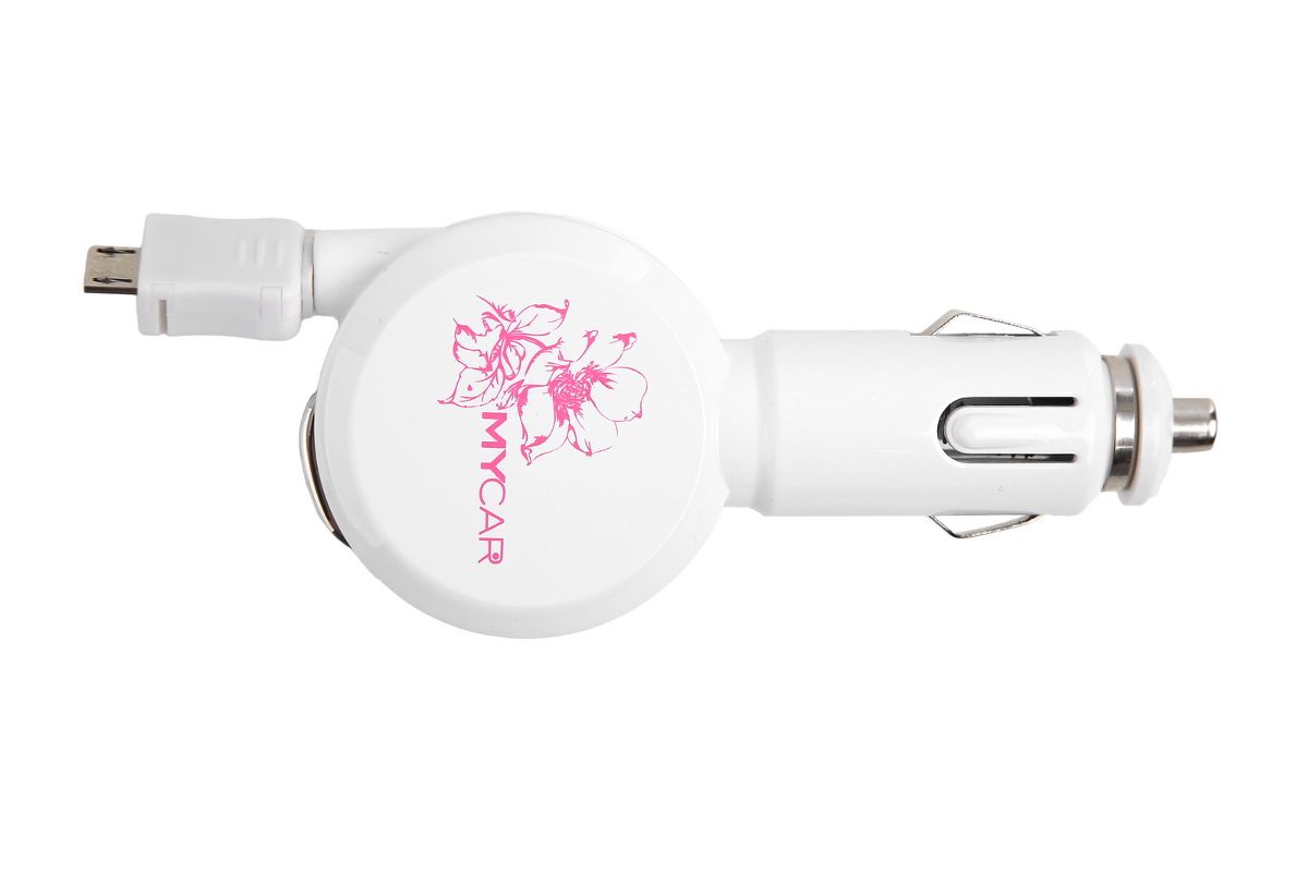 Подходит для зарядки устройств с разъемом micro USB, оригинальный женский дизайн, скручивающийся провод, световая индикация процесса зарядки, входное напряжение 12В/24В.