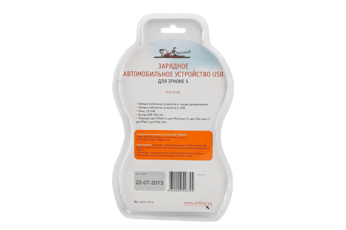 Зарядное устройство AIRLINE ACH-UI-06 автомобильное USB для IPhone 5