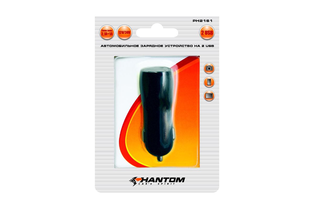 USB-адаптер гнезда прикуривателя Phantom предназначен для зарядки планшетных компьютеров и других энергоемких устройств.
