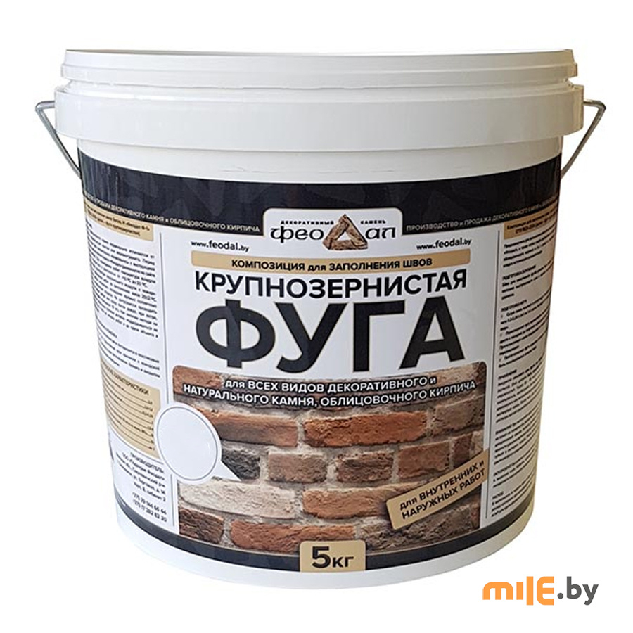 Фуга, представленная компанией «Подворье Феодал», представляет собой сухую крупнозернистую смесь, рецептура которой разработана в 2009 году и используется до сих пор. Это экологически чистый материал, который не содержит вредных для здоровья компонентов и летучих веществ. В составе затирки минеральный, вяжущий заполнитель и различные модифицирующие добавки, которые и придают этой сухой смеси эластичность, прочность, а также повышенную морозо- и водостойкость.