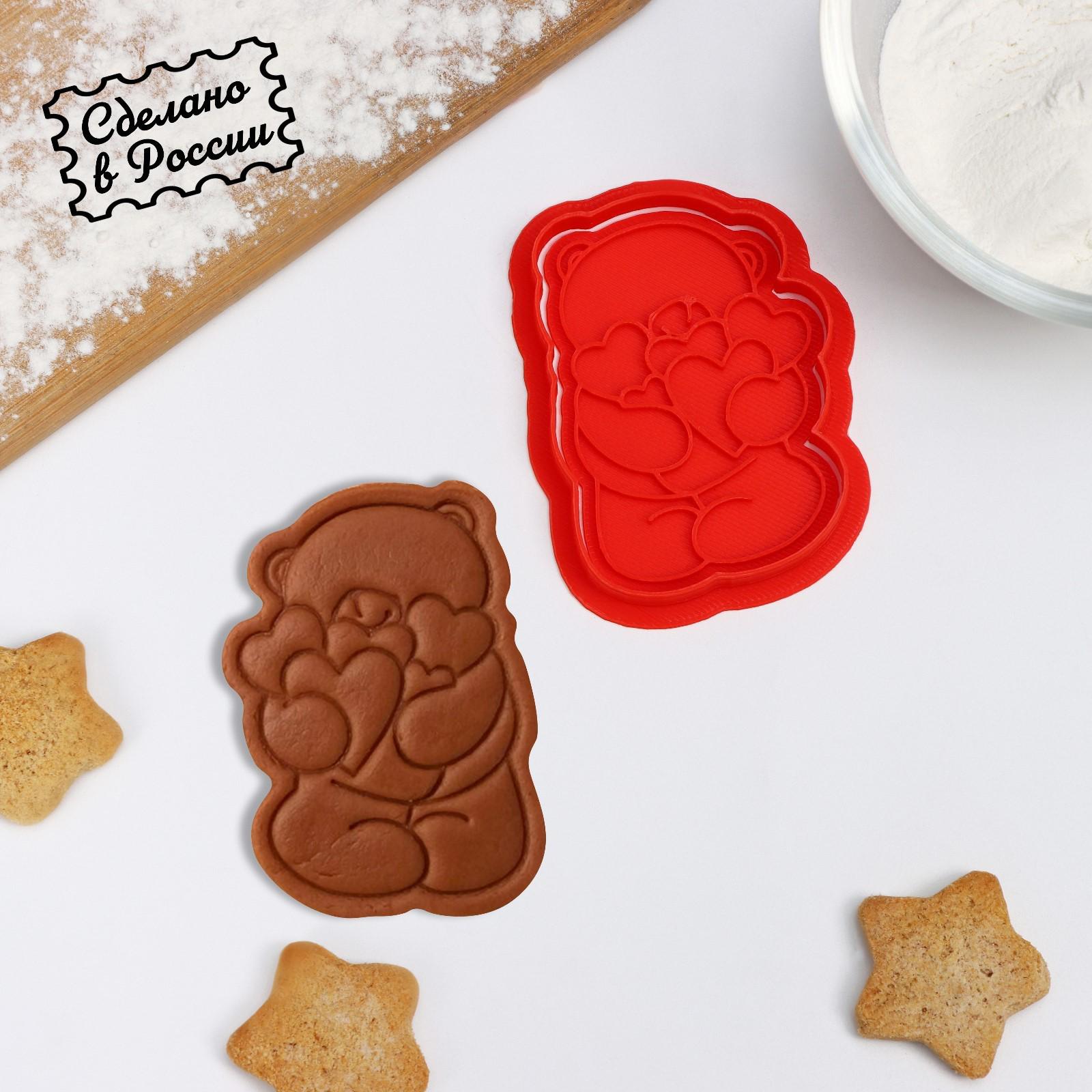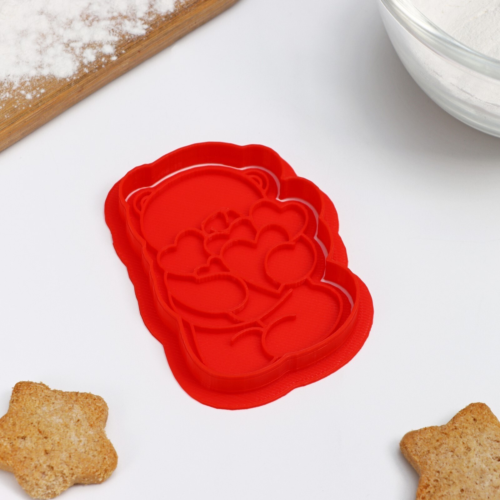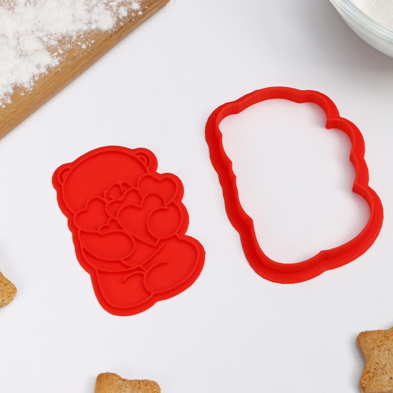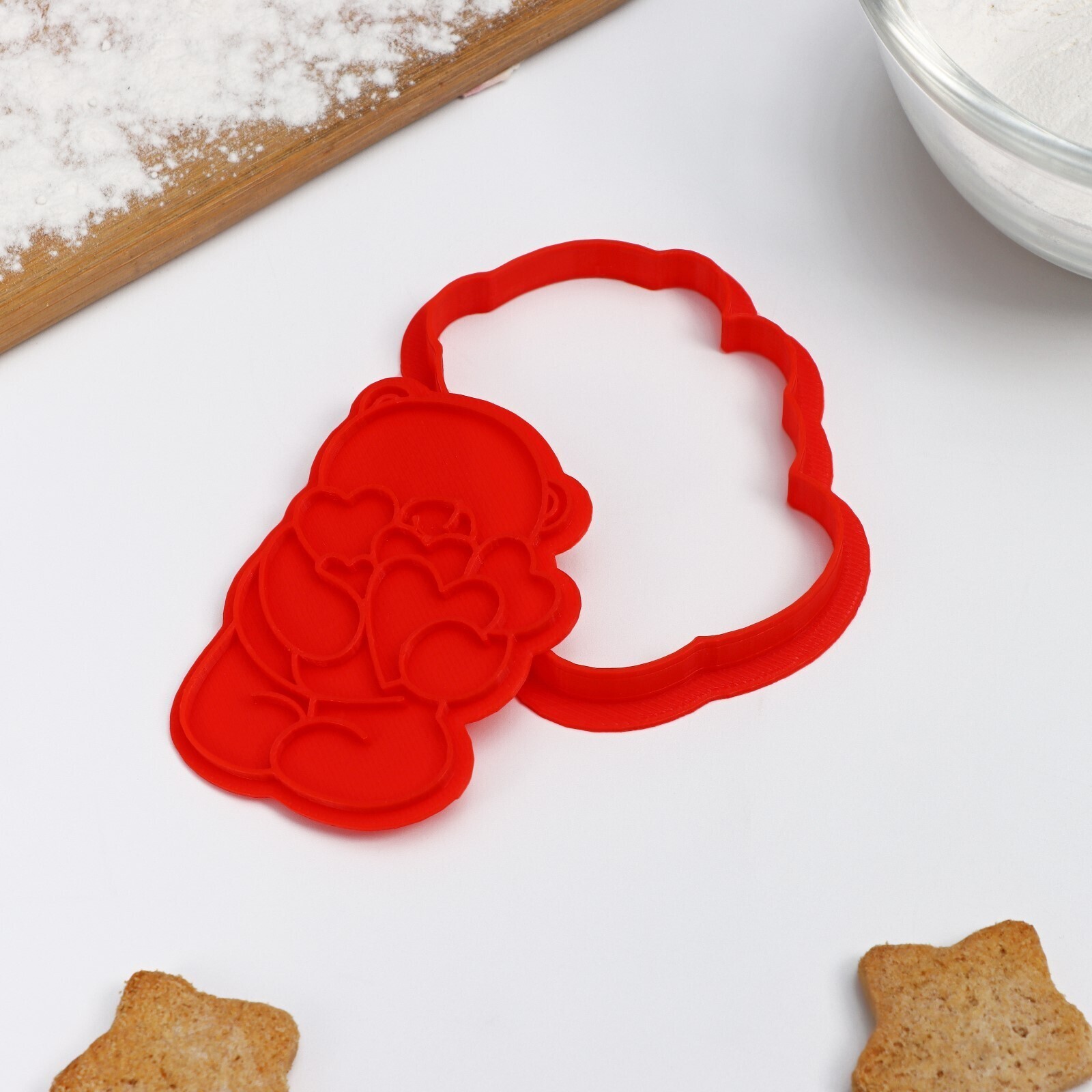 Форма для печенья «Мишка с сердцами», штамп, вырубка, цвет красный