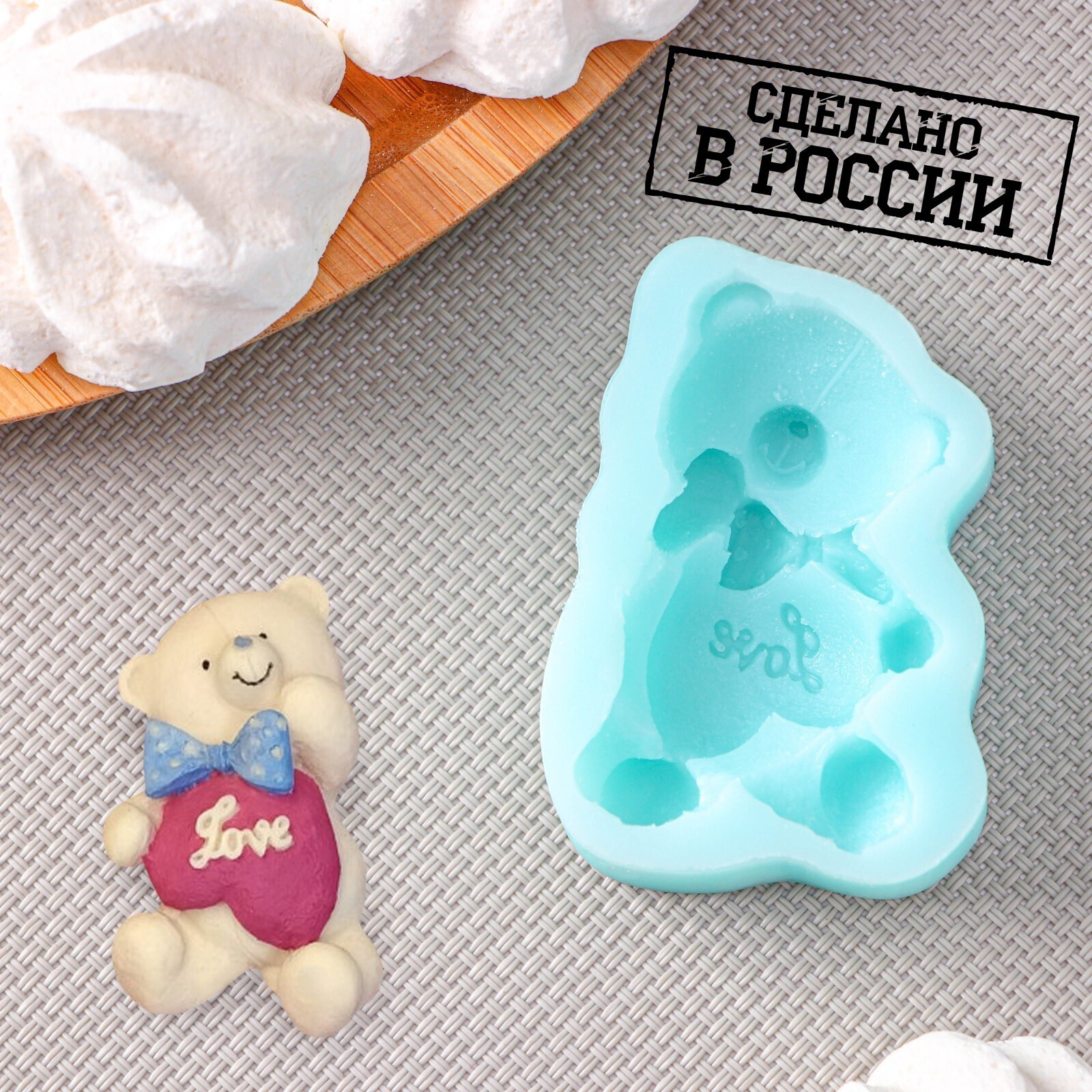 Силиконовая форма «Мишка с сердцем», 5,9×3,6×1,5 см, цвет бирюзовый
