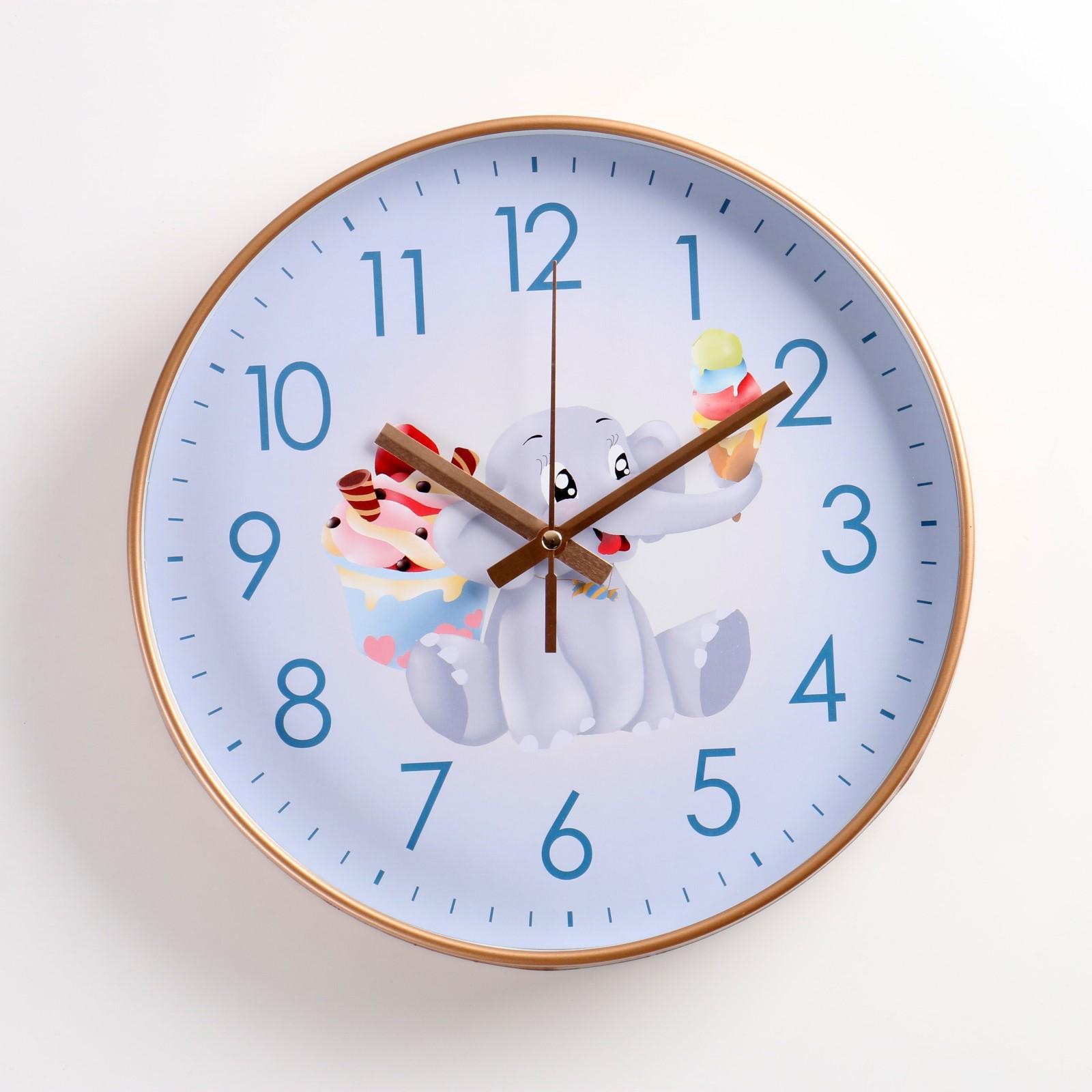 Часы настенные, серия: Детские, "Слоненок", плавный ход, d-30 см