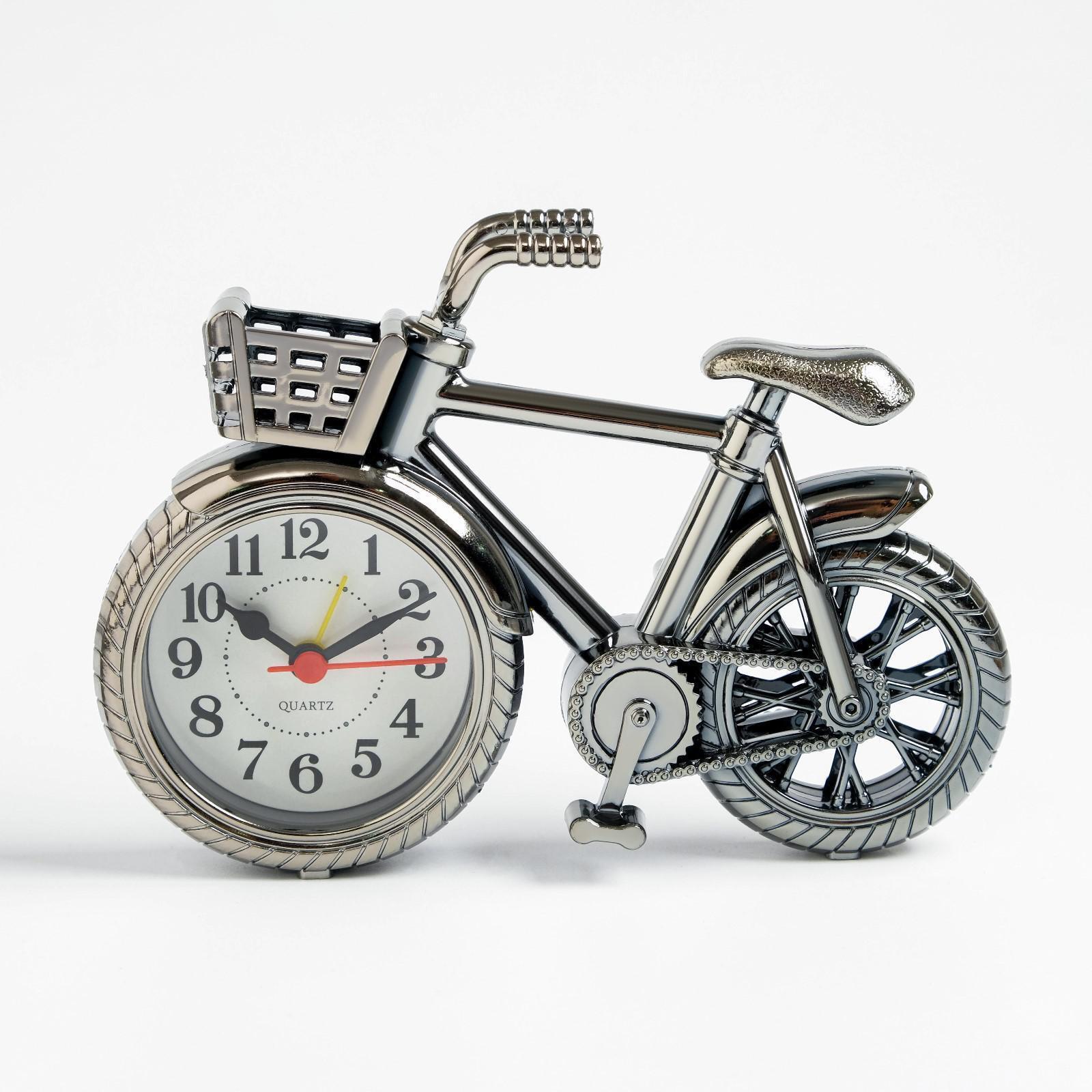 Будильник "Велосипед с корзиной", дискретный ход, d-7 см, 13.5 х18.5 см