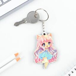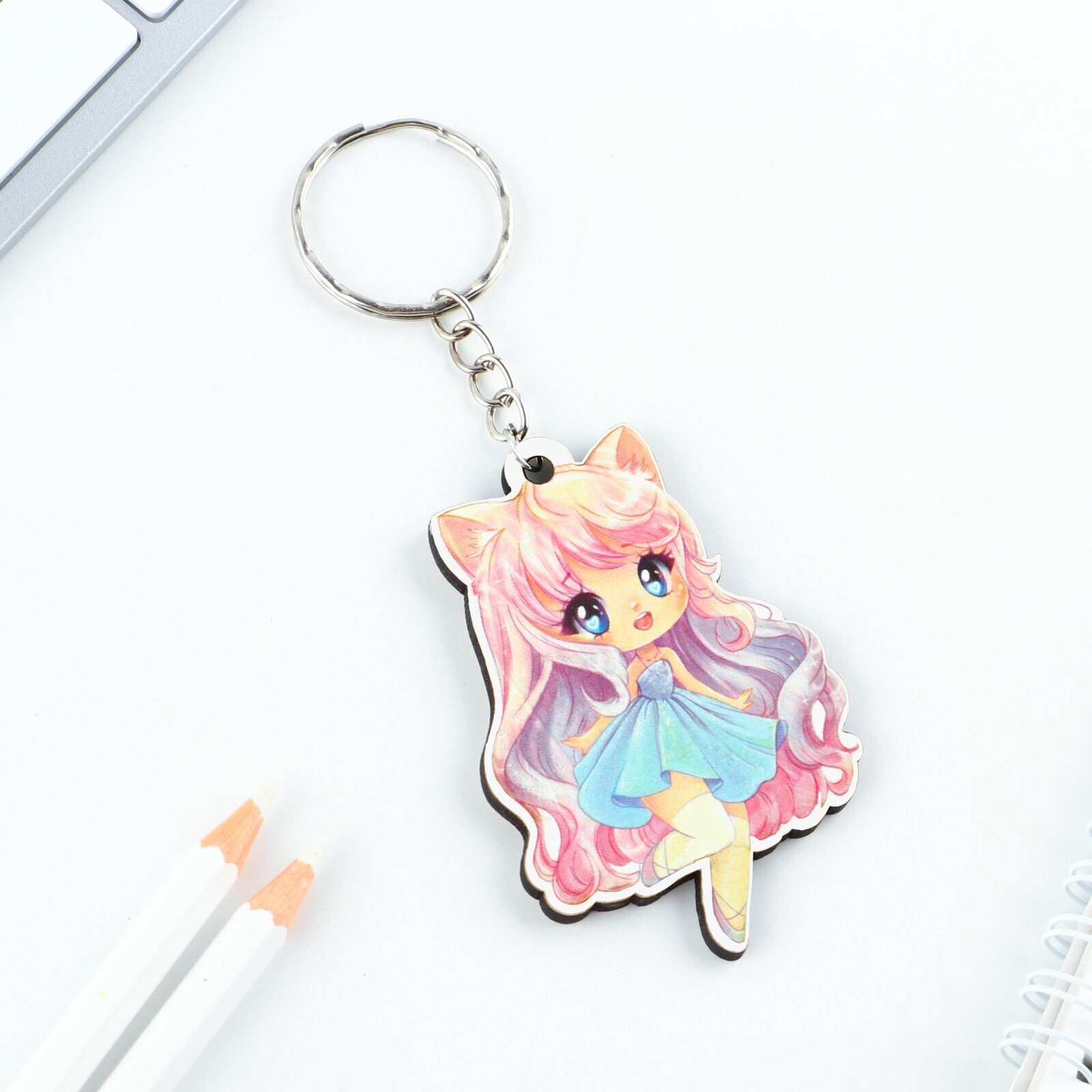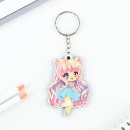 Брелок деревянный аниме «Девочка-котенок» 4 х 6 см