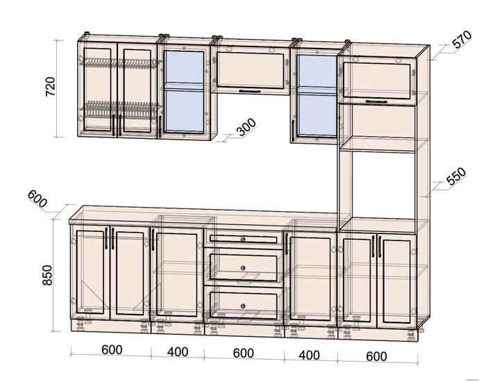 • Высота нижних шкафов 85 см