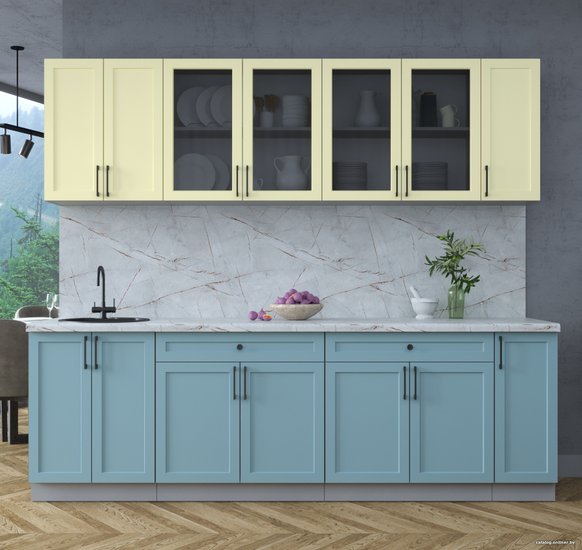 • Цвет нижних фасадов голубой