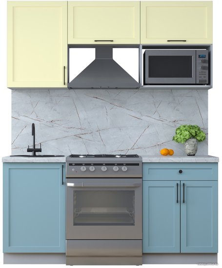 • Цвет нижних фасадов голубой