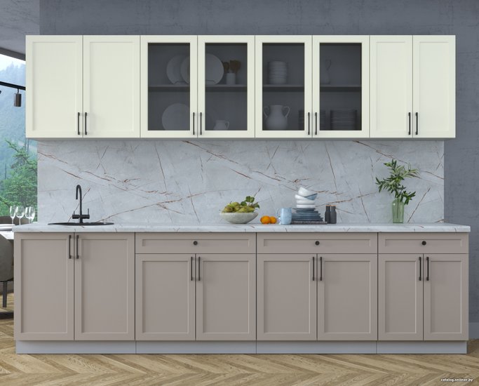 • Глубина нижних шкафов 48 см