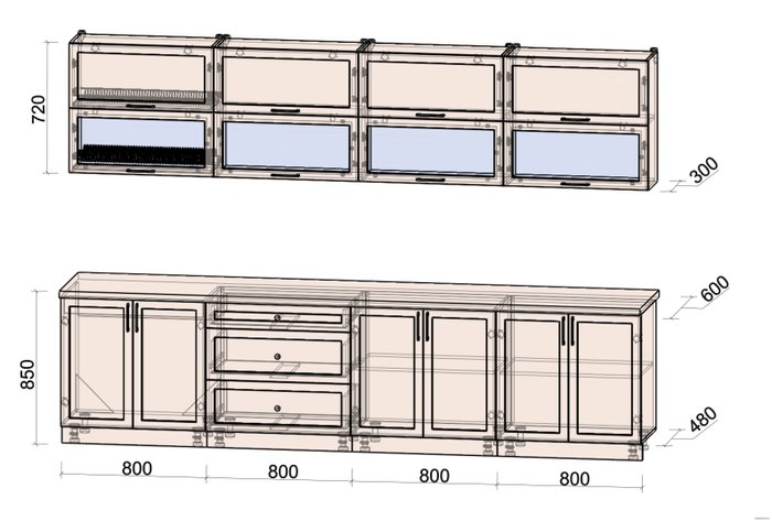 • Высота нижних шкафов 85 см