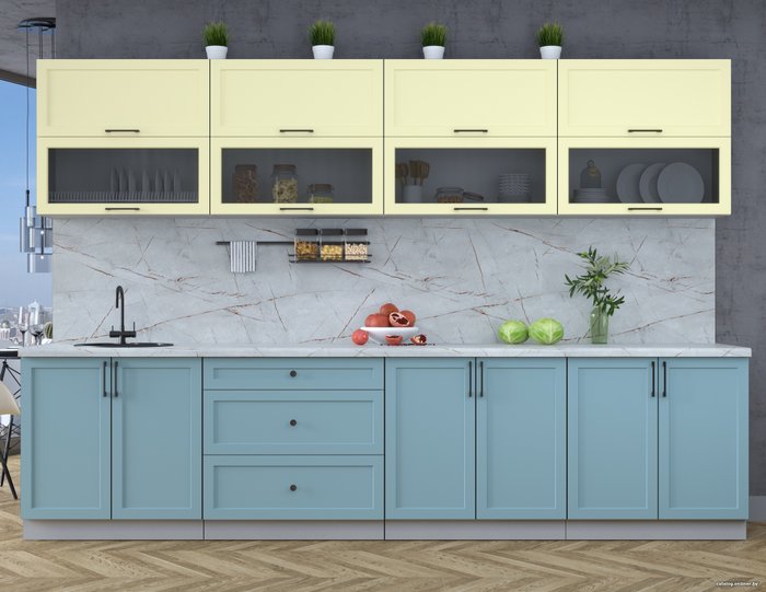 • Цвет нижних фасадов голубой