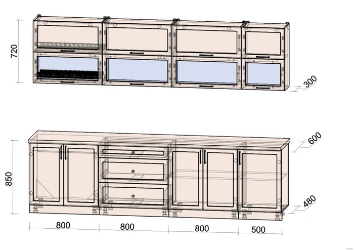 • Высота нижних шкафов 85 см