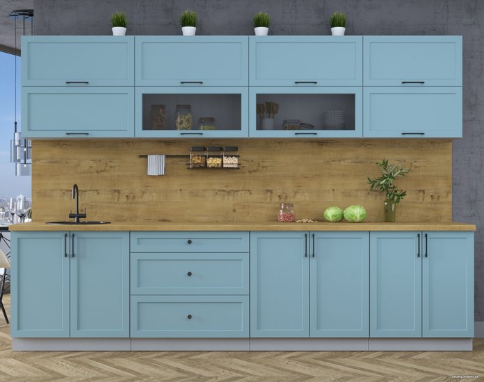 • Цвет нижних фасадов голубой