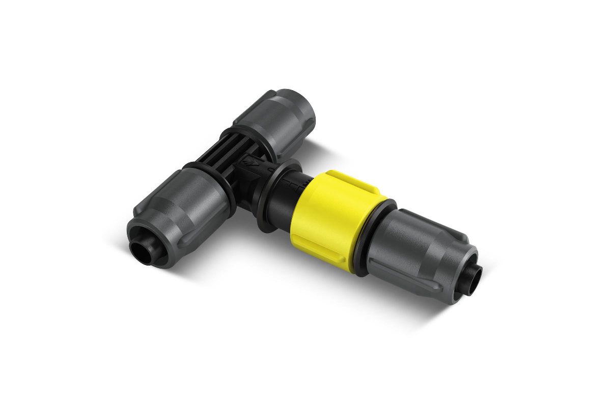 Тройник с регулятором. Для соединения трех системных шлангов или присоединения сочащегося шланга. Боковой отвод с регулятором расхода воды. Позволяет проложить две независимые линии. Эргономичная конструкция. Комплект 2 шт.