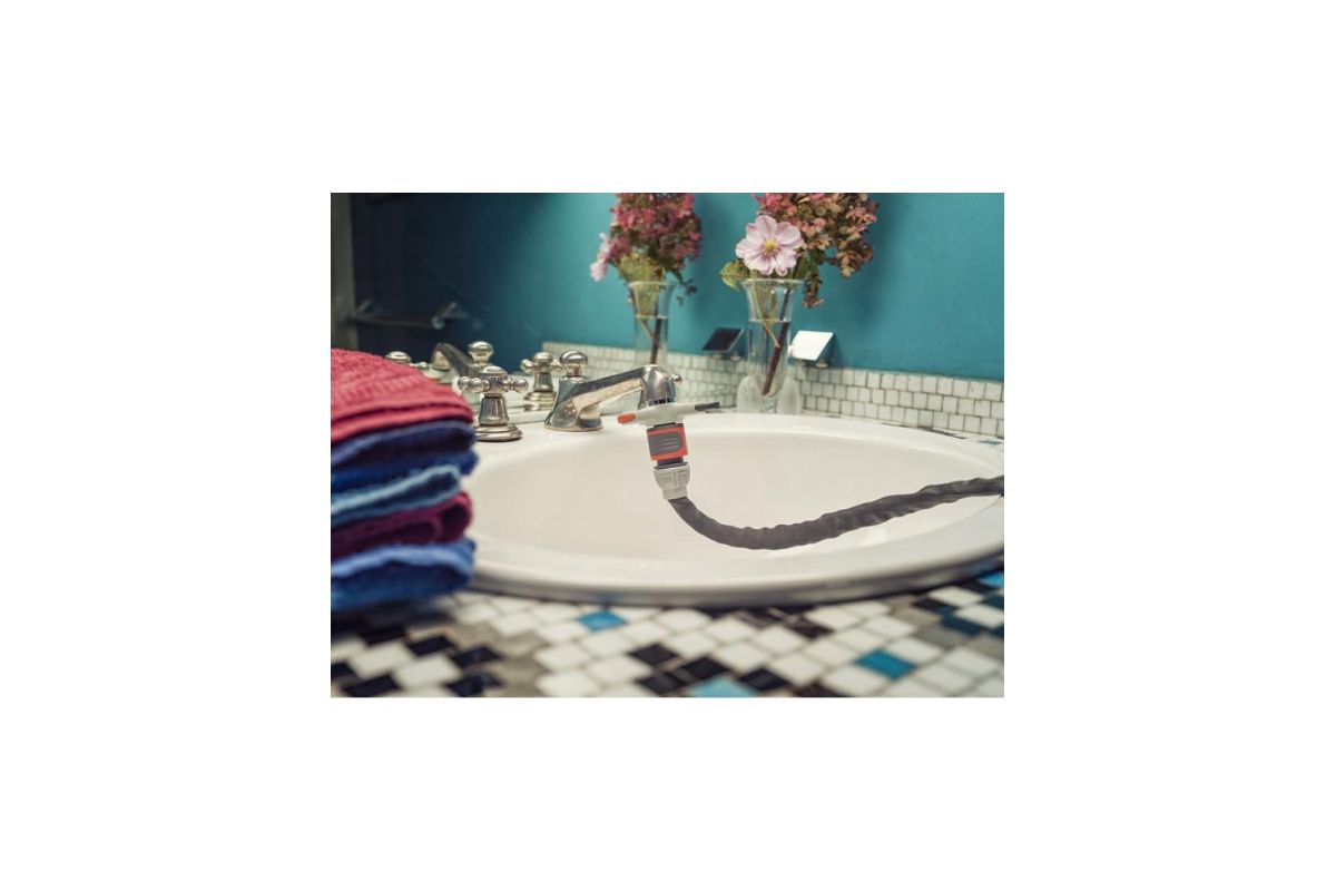 Подключение штуцера к крану осуществляется с помощью всего нескольких простых шагов. Благодаря входящему в комплект гаечному ключу затягивание резьбы становится не сложнее детской игры. После этого установите адаптер на резьбу и нажмите на ползунок. Сдвиньте его, чтобы зафиксировать адаптер на резьбе. Теперь можно подсоединить шланг. При перемещении ползунка в противоположном направлении адаптер будет ослаблен и его можно будет легко снять. Убедитесь как в 5-летней гарантии производителя, так и в надежности уплотнения GARDENA, изготовленного в Германии. Адаптер совместим со всеми обычными кранами с внутренней резьбой M 24 x 1 или с наружной резьбой M 22 x 1 (не подходит для водонагревателей низкого давления или без давления).