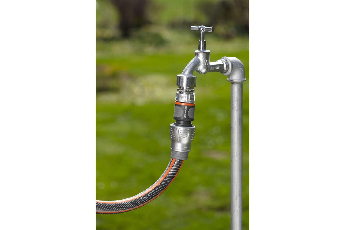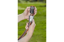 Предназначен для соединения на входе шланга. Для шлангов диаметром 19 мм (3/4).Современный, изящный дизайн , рифленые поверхности захвата из мягкого пластика, высокая механическая прочность , благодаря прочной зажимной гайке из высококачественного металла со встроенной защитой от перегибов шланга.