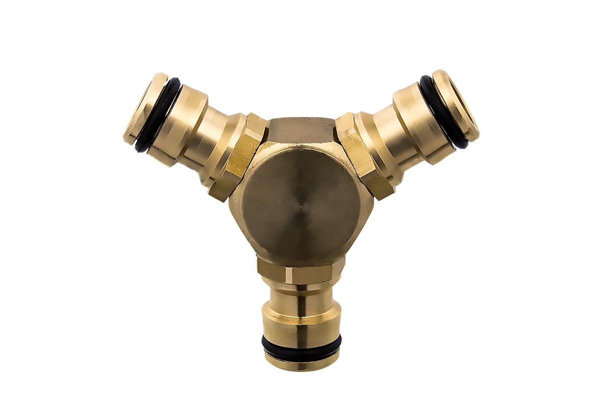Предназначен для разветвления потока воды на 2 направления. Подключение шлангов с помощью быстроразъёмных соединителей.