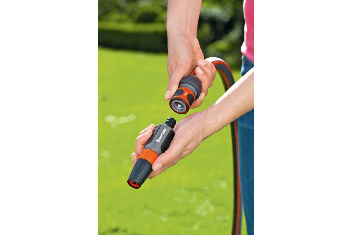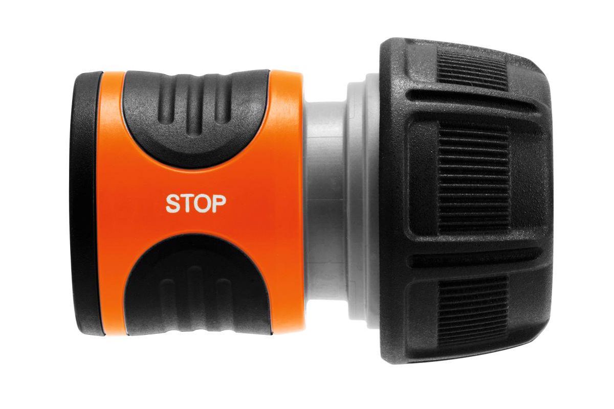 Соединитель GARDENA 18214 предназначен для стыковки шлангов 3/4” между собой или с насадками.