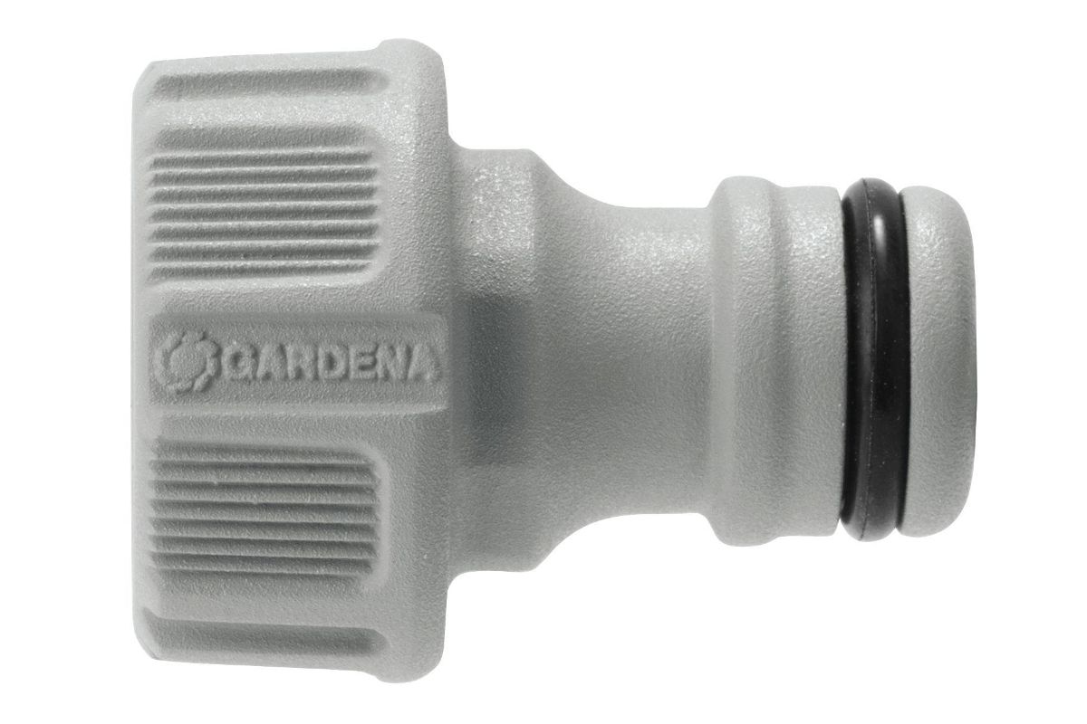 GARDENA 18200-29.000.00 – резьбовой штуцер 1/2'' для соединения шлангов к водопроводному крану без дополнительных инструментов. Подходит для соединения кранов 3/4'' со шлангами 1/2''.