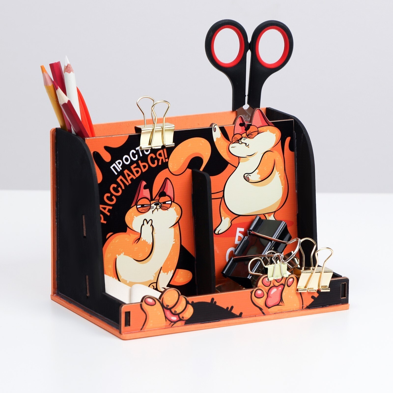 Органайзер настольный с местом под телефон "Рыжий кот" 17,5 х 12,3 х 12 см