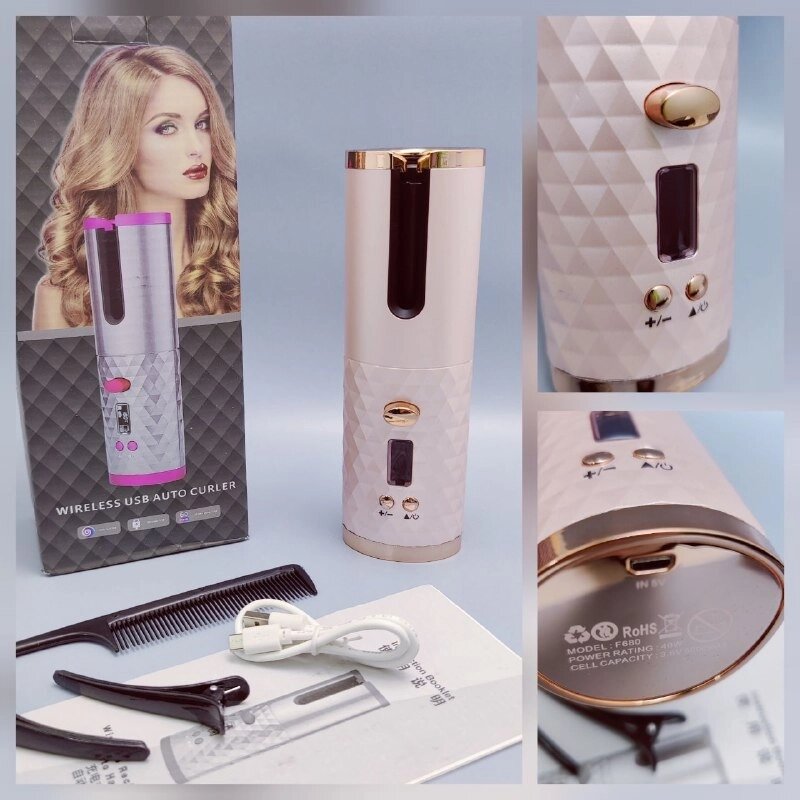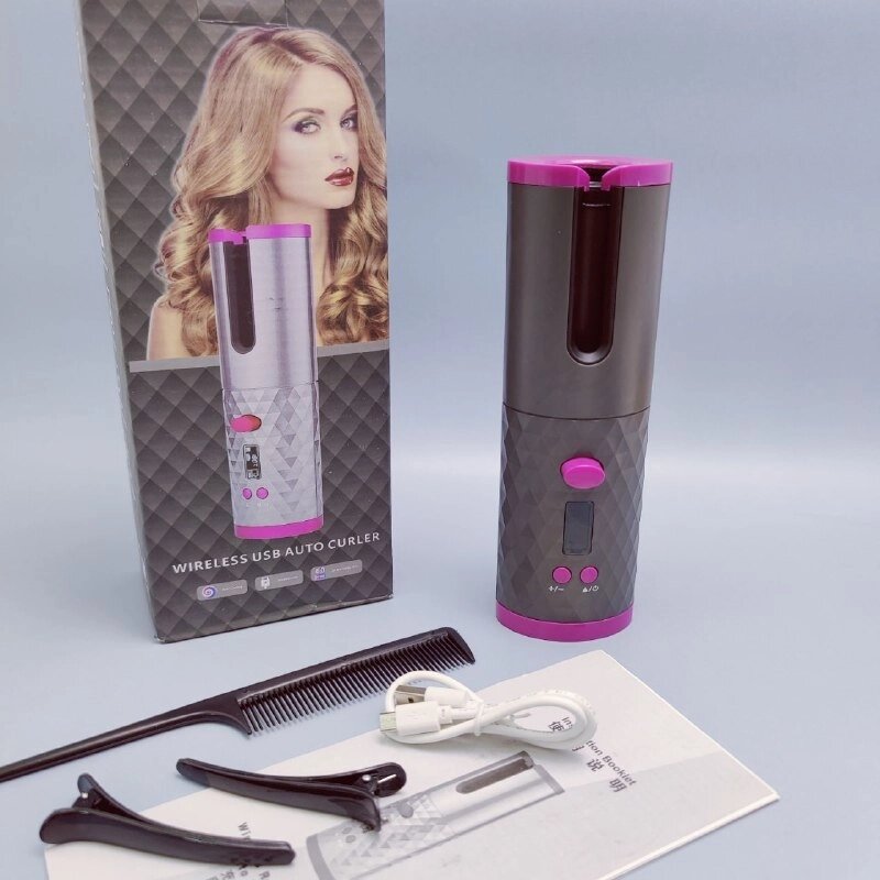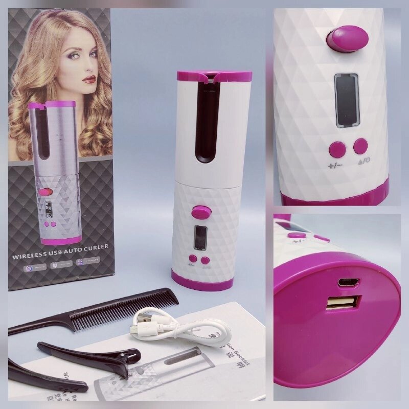 Беспроводные Бигуди Сordless automatic стайлер для завивки волос Нежно розовый/фуксия