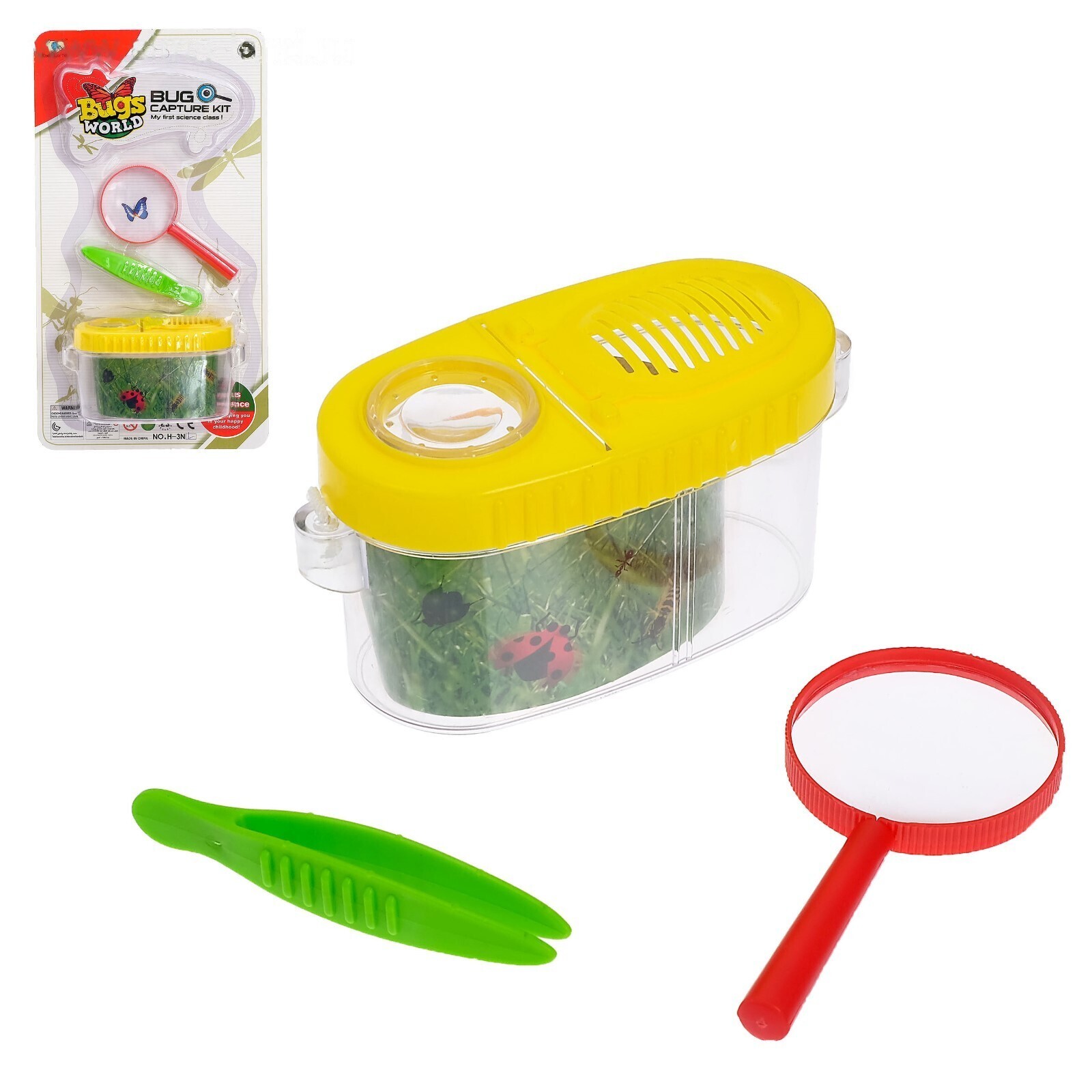 Набор для исследования «Юный биолог», пинцет, лупа, баночка для насекомых