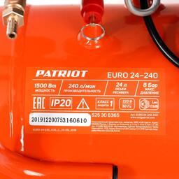 Компрессор PATRIOT EURO 24/240 - мобильный аппарат, который предназначен для нагнетания сжатого воздуха в различный пневмоинструмент.