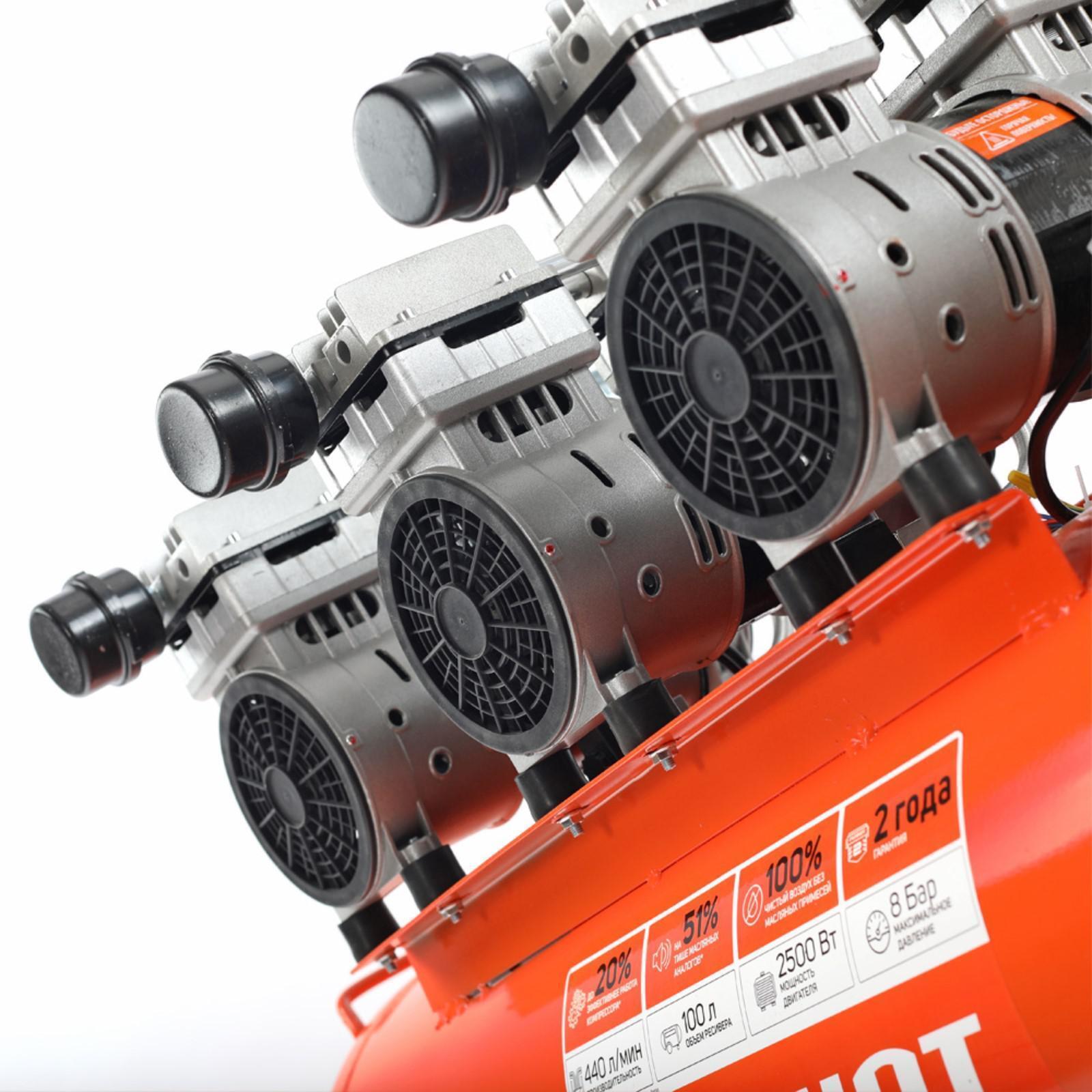 Компрессор поршневой безмасляный Patriot WO100-440, 2500 Вт, 440 л/мин, 100 л, "елочка"