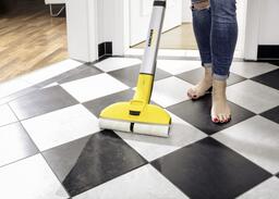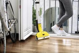 Для удаления с пола пятен или брызг совсем не обязательно с усилием тереть его шваброй и переносить тяжелое ведро с водой. Гораздо более удобным решением является аппарат для влажной уборки пола EWM 2, оснащенный двумя бачками и вращающимися роликовыми щетками. Щетки непрерывно увлажняются чистой водой и очищаются от грязи, которая собирается в бачок для грязной воды. Благодаря этому на 20 % повышается эффективность уборки по сравнению с использованием обычной швабры*. При этом благодаря узкой форме корпуса и шарнирному креплению щеточной головки аппарат занимает минимум места при хранении и позволяет легко очищать пол под мебелью. Время высыхания пола составляет лишь около 2 минут, что позволяет без опасений использовать аппарат для уборки любых твердых напольных покрытий, например керамической плитки, ПВХ, винила, паркета или ламината. Мощный литий-ионный аккумулятор обеспечивает непрерывную работу продолжительностью до 20 минут, которой достаточно для уборки пола площадью до 60 м².