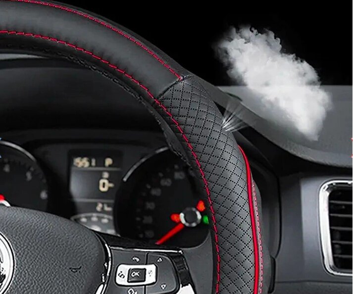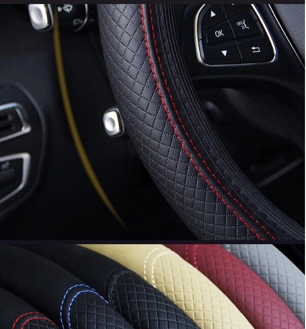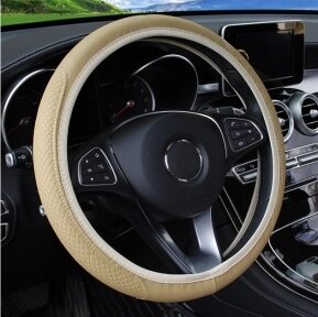 Оплетка - чехол на руль автомобиля классический, экокожа с перфорацией, М 37-39 см Бежевый