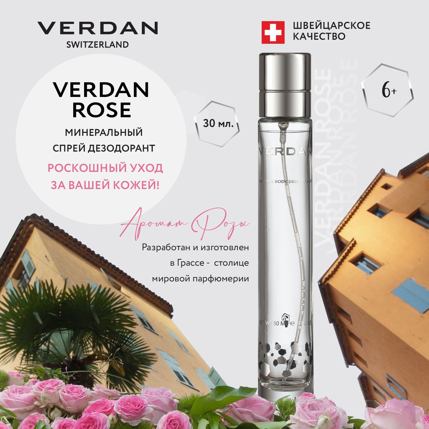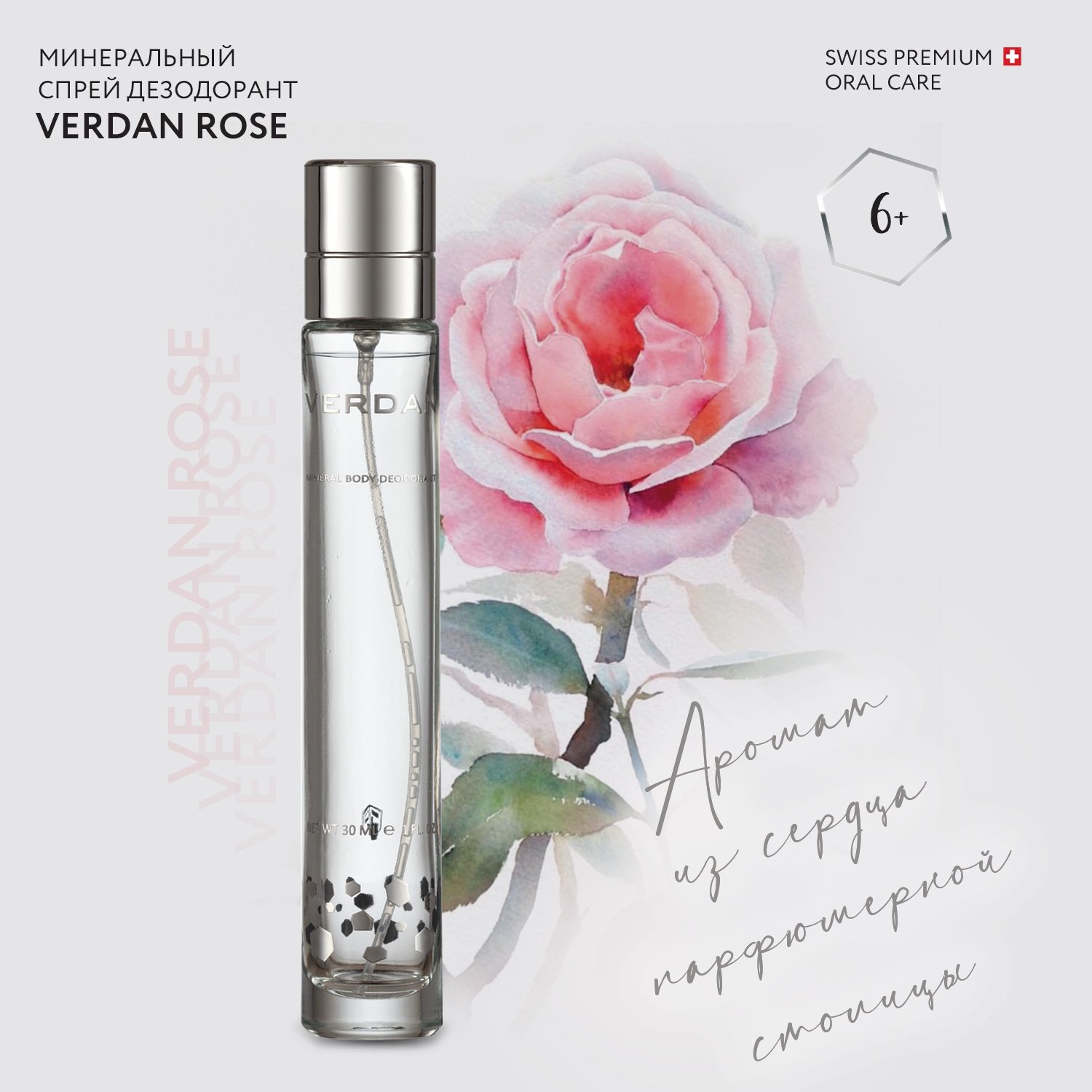 Дезодорант Verdan минеральный спрей Rose 30 ml для женщин L005