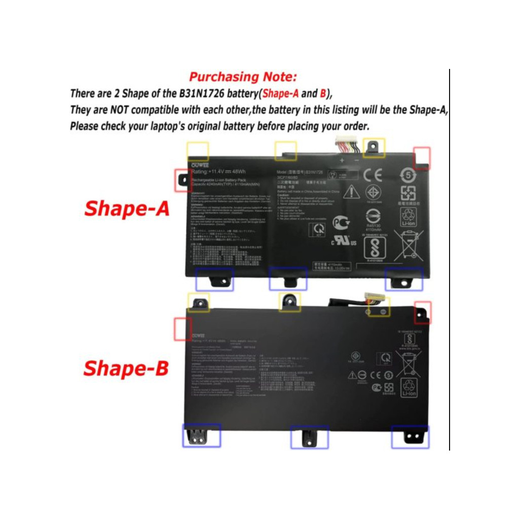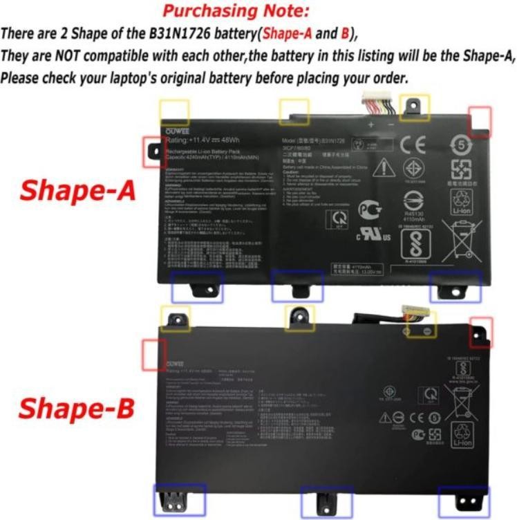 Акумулятор до ноутбука ASUS TUF Gaming FX504GD (B31N1726) 11.4V 4212mAh, Shape-A (NB431151)